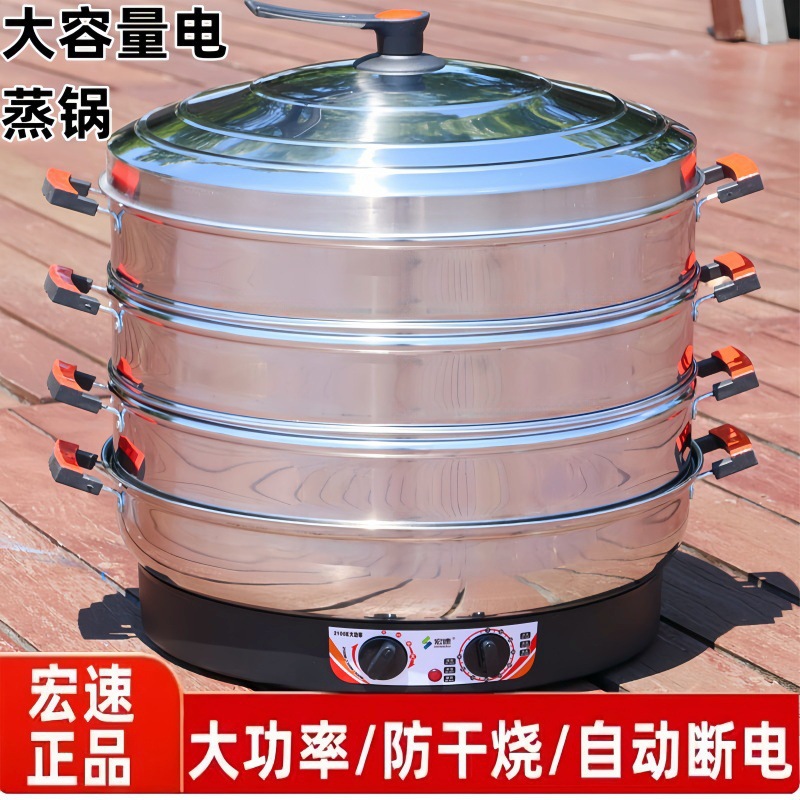 宏速电蒸锅家用大容量多层电蒸笼多功能蒸菜馒头三层不锈钢蒸汽锅