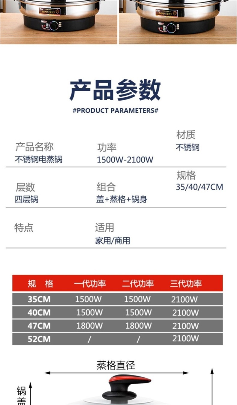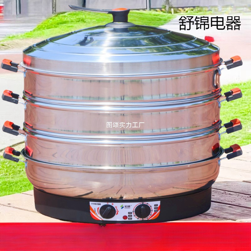 多功能超大号52cm电蒸笼商用插电保温不锈钢自断电蒸锅三层蒸馒头