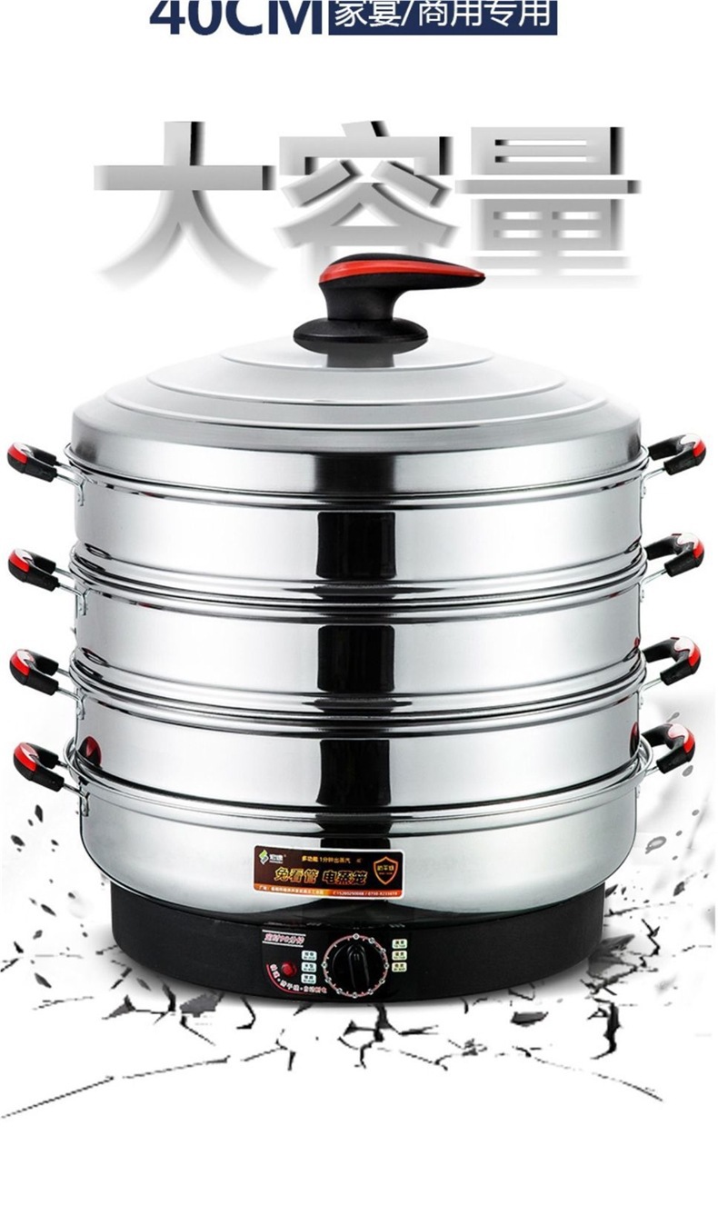 多機能特大52cm電気蒸し器業務用プラグイン断熱ステンレス鋼自動電源オフ蒸し器三層蒸しパン