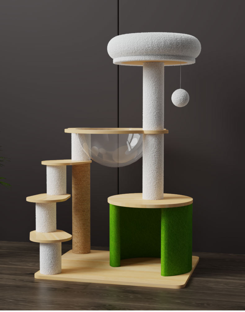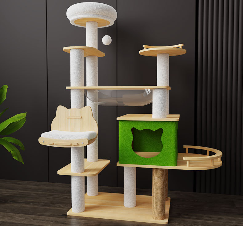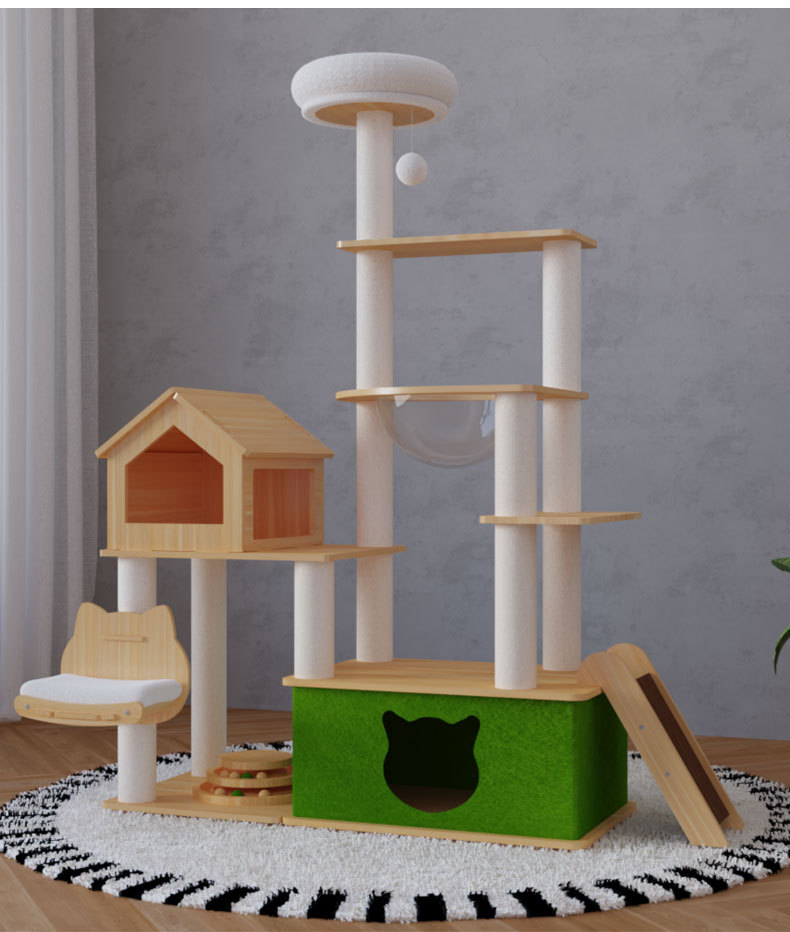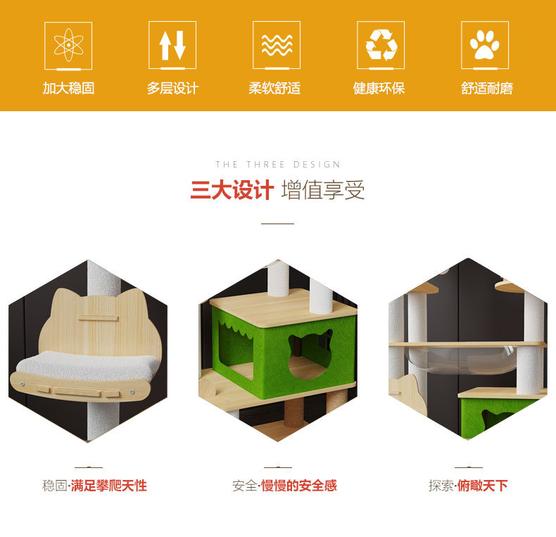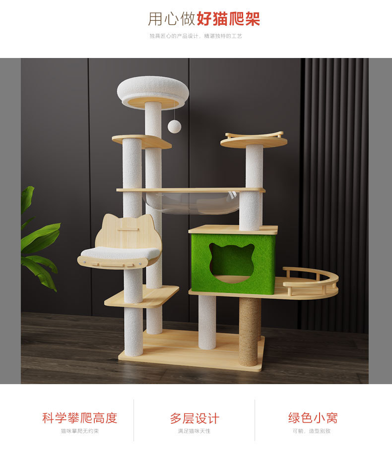 キャットクライミングフレーム、無垢材多層、スペースを占有しない、大型キャットクライミングフレーム、キャットネスト、キャットツリーが一体化