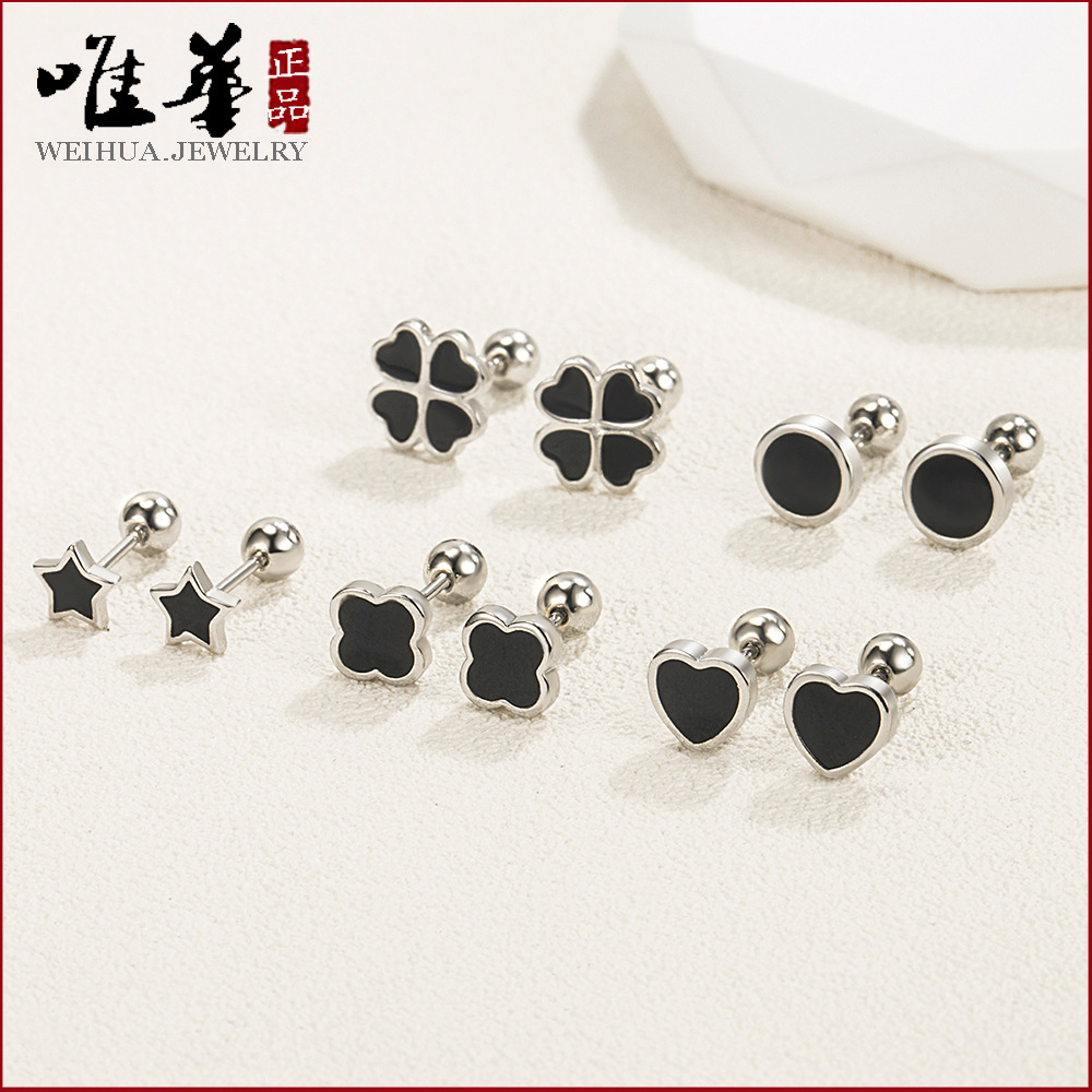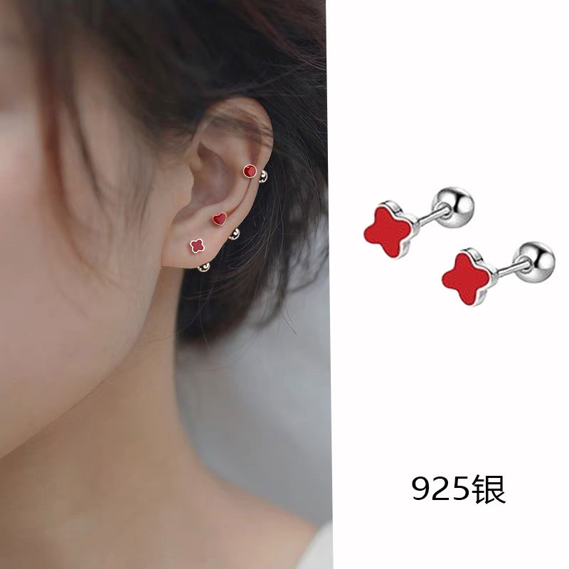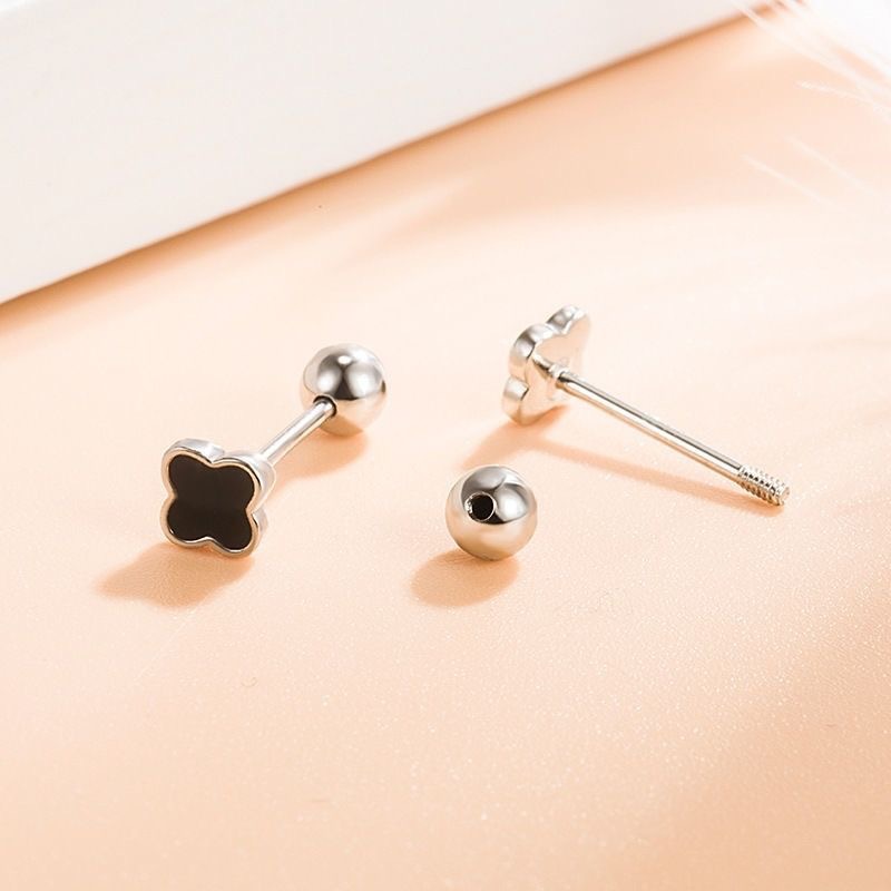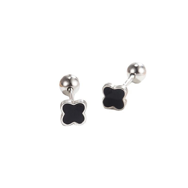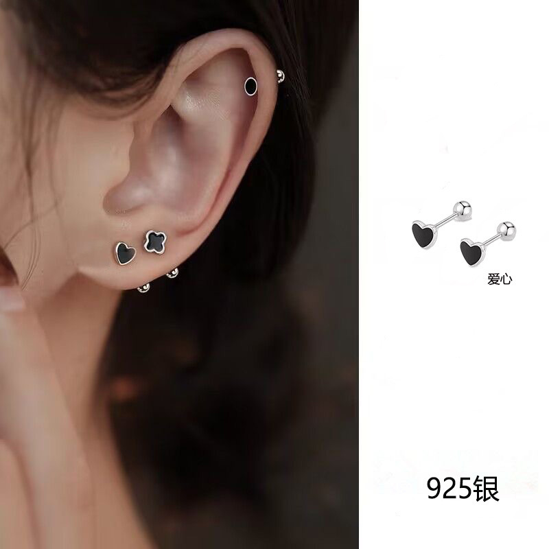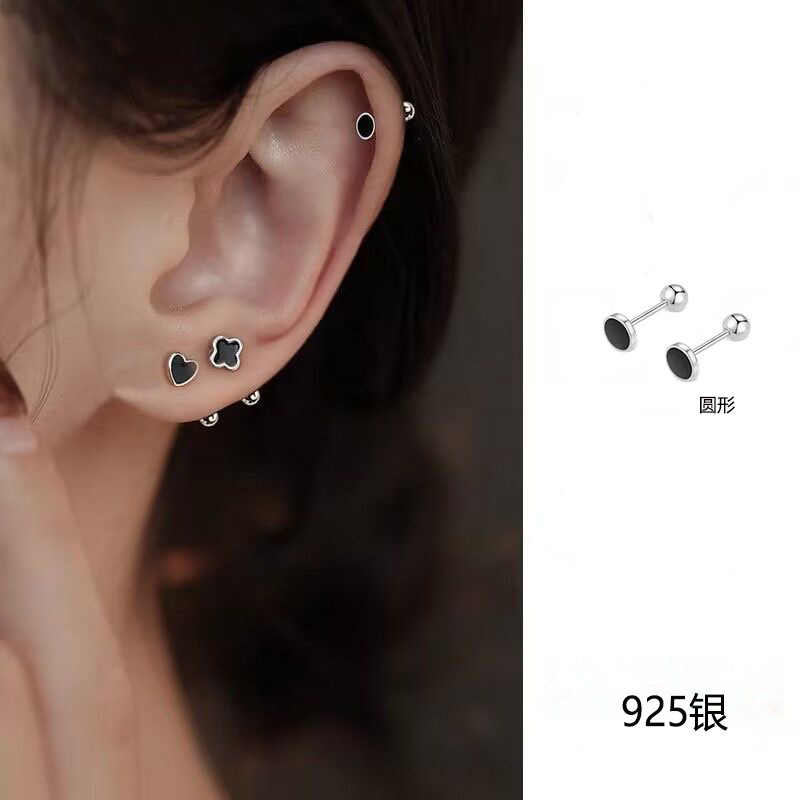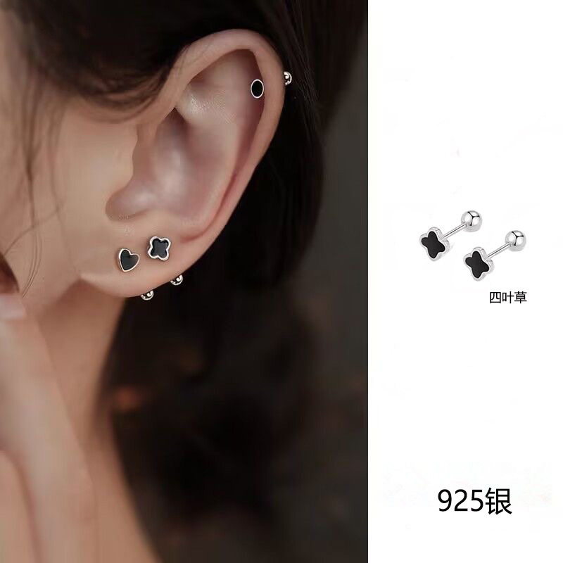 S925 シルバー針黒四つ葉のクローバーイヤリング 2025 新しいトレンディな睡眠なし耳骨ネイルイヤリング女性のための