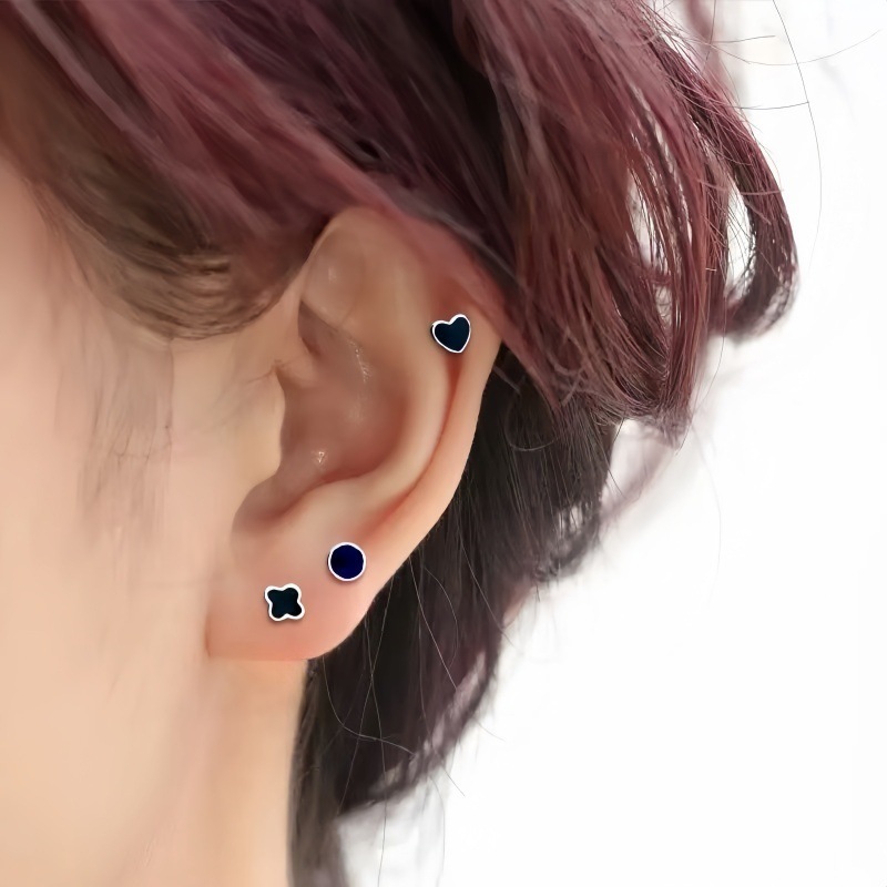 独特な小型の黒いクローバーの耳の骨の釘の女性は寝ています。