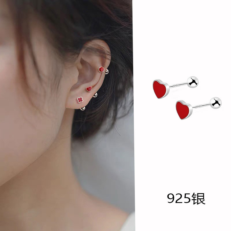 気質レッドラブイヤリング2024気質秋冬イヤリングライトラグジュアリーニッチデザイン