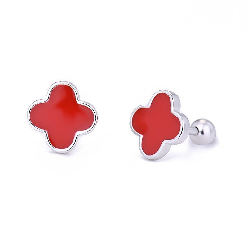 幸運の四つ葉のクローバーイヤリング、フェミニンな小さな花のネジ留めイヤリング、ニッチなデザイン、就寝時にイヤリングを外す必要はありません。
