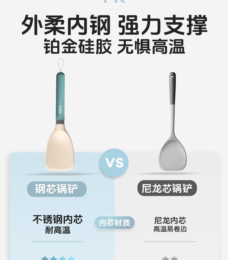 シリコン製フライパン用ヘラ、焦げ付き防止、魚用ヘラ、家庭用補助調理ヘラ、キッチン用品、ステンレス製内芯鍋ヘラ