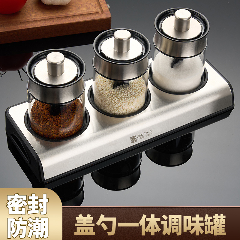 调料罐带勺佐料盒防潮玻璃盐巴罐厨房家用胡椒粉密封调味瓶套装