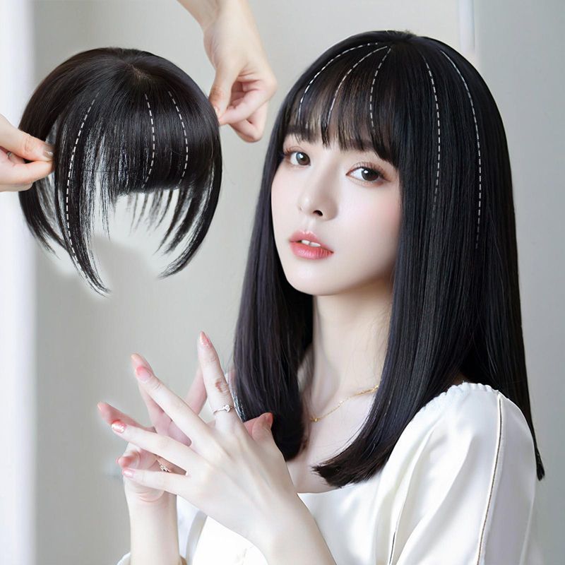 女性用3D前髪ウィッグ、模擬ヘア額インビジブルパッチ、軽くて通気性があり、白髪をカバーし、跡が残らないヘアピース