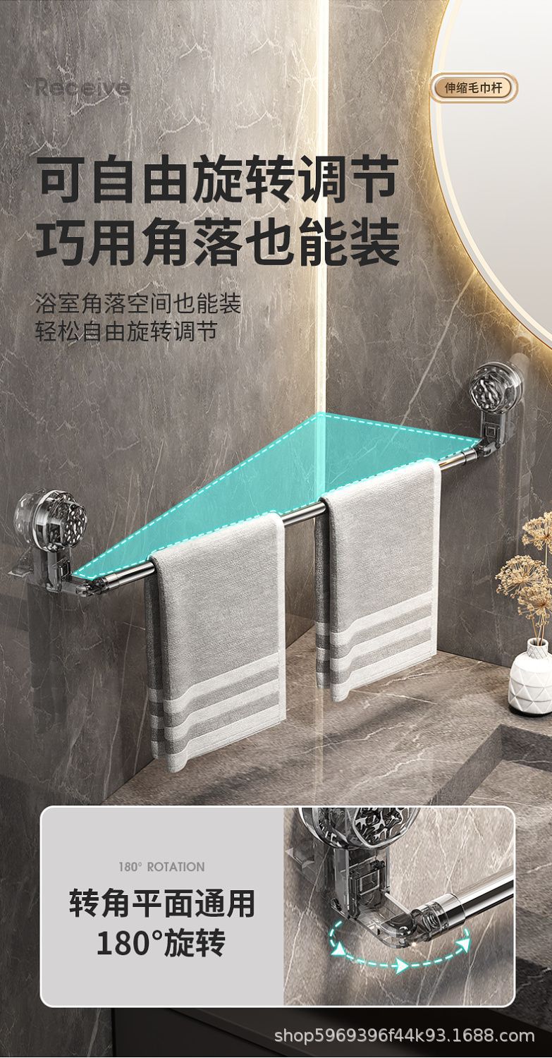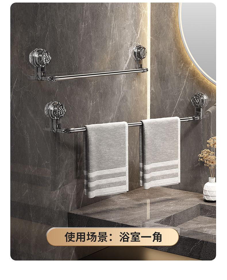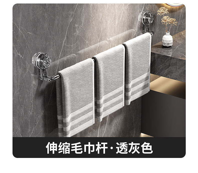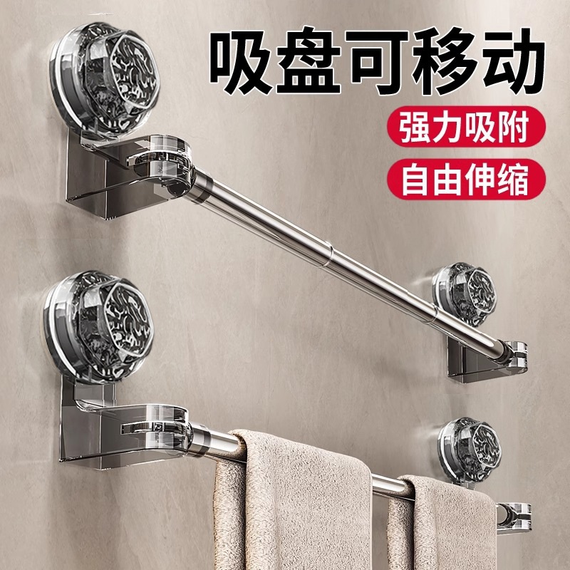 吸盘毛巾卫生间免打孔浴室伸缩毛巾杆置物洗手间浴巾纳挂