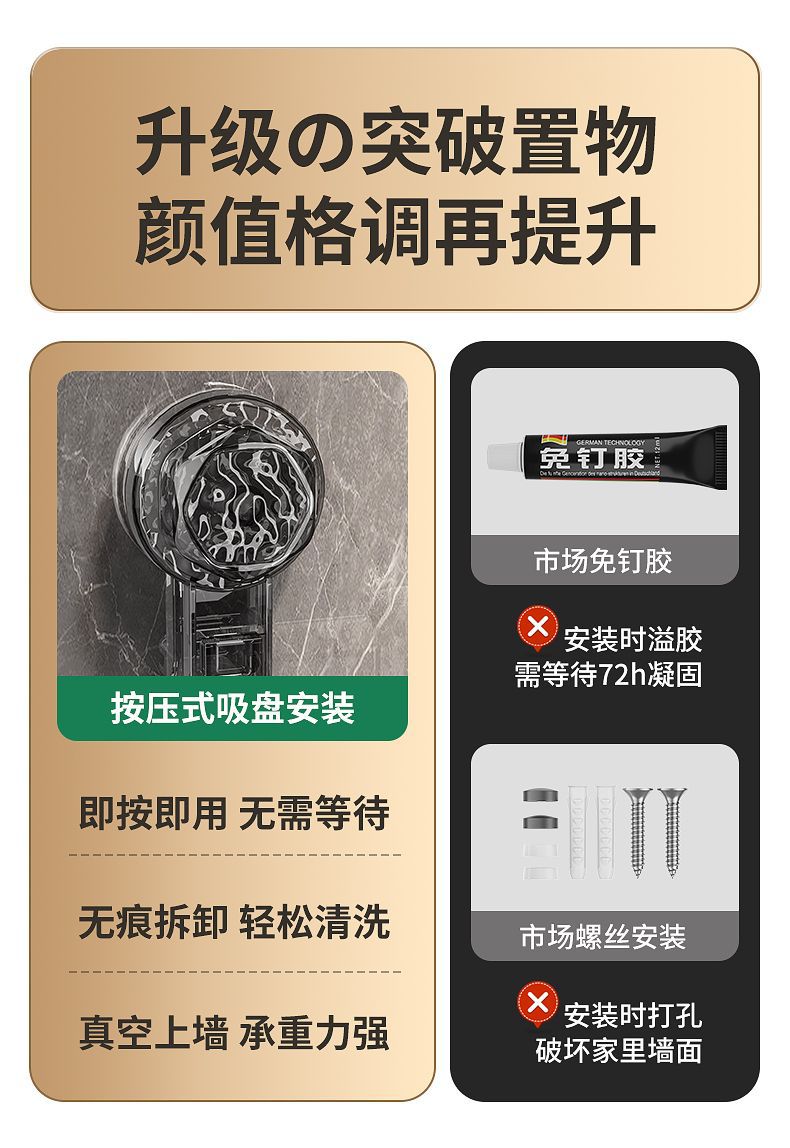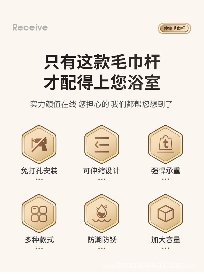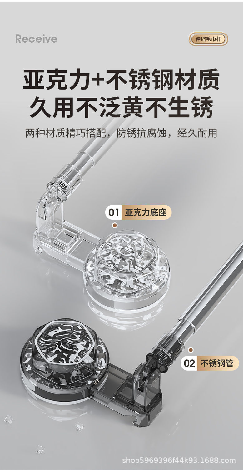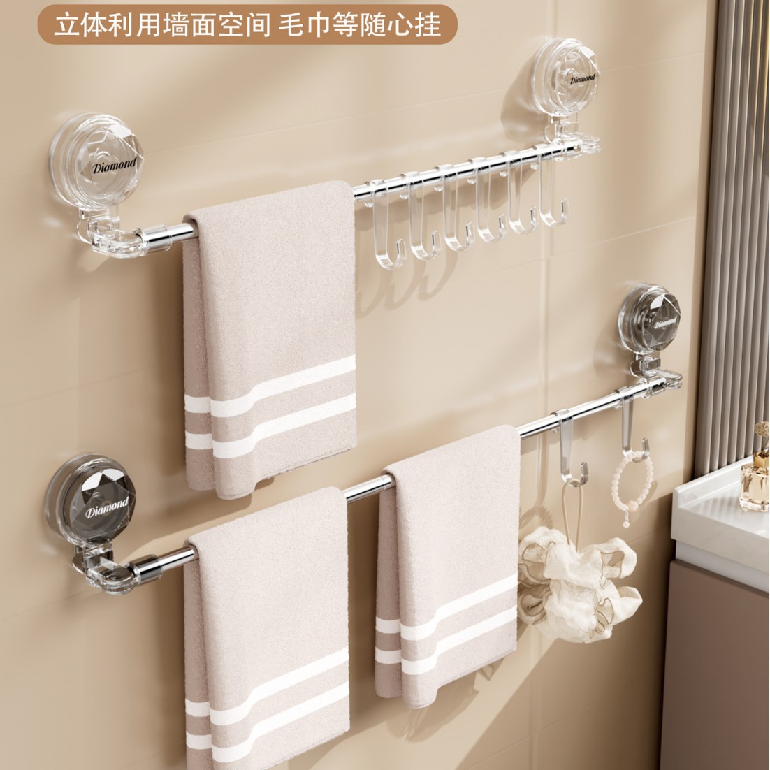 吸盘毛巾卫生间免打孔浴室伸缩毛巾杆置物洗手间浴巾纳挂