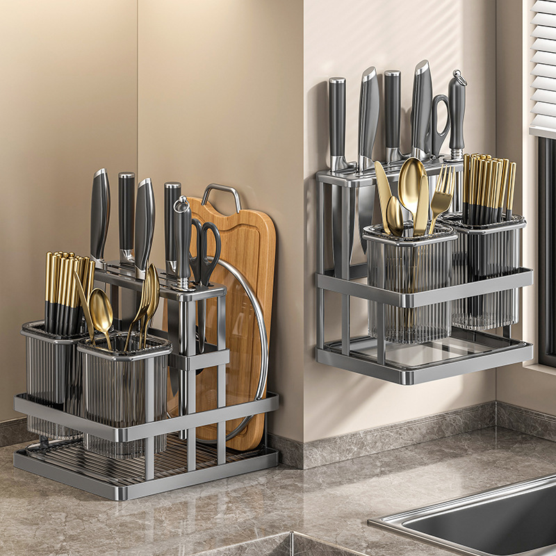 キッチン包丁棚メコン一体多機能刃物収納棚壁掛け式テーブル箸籠まな板包丁棚
