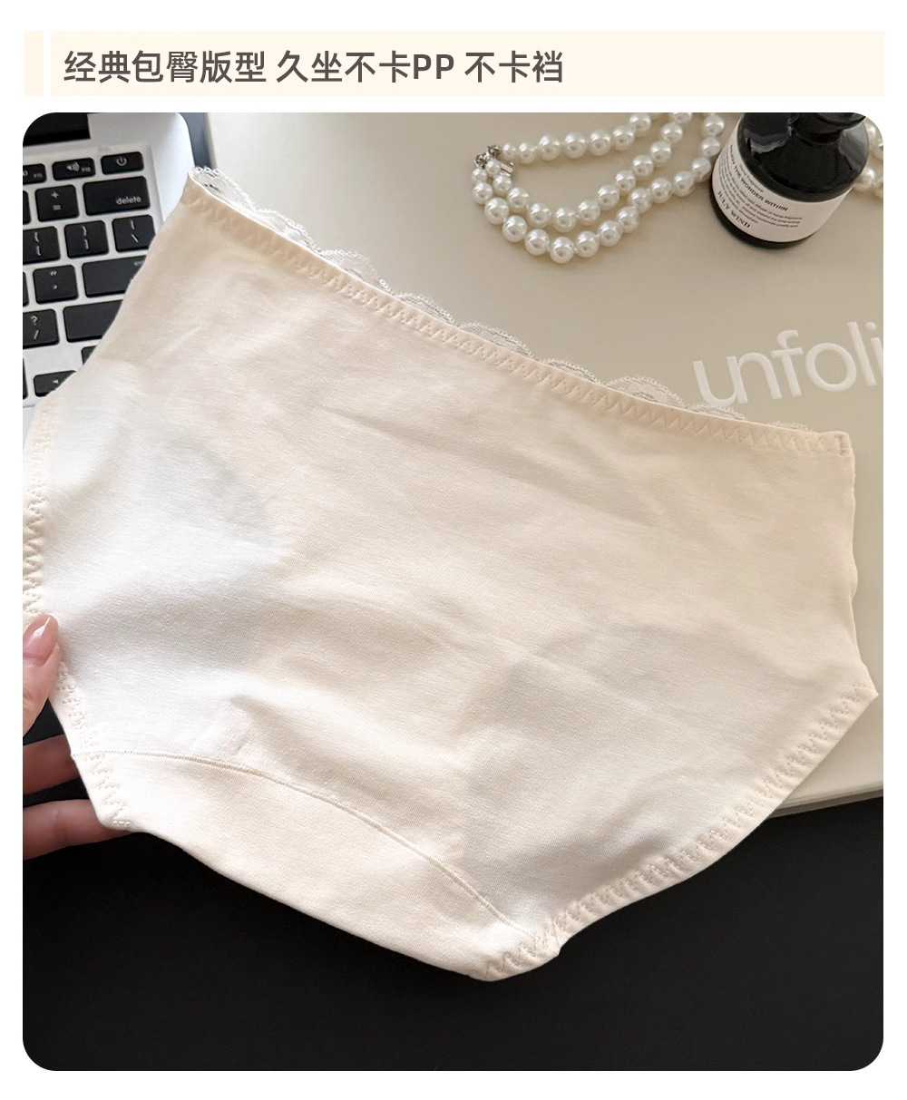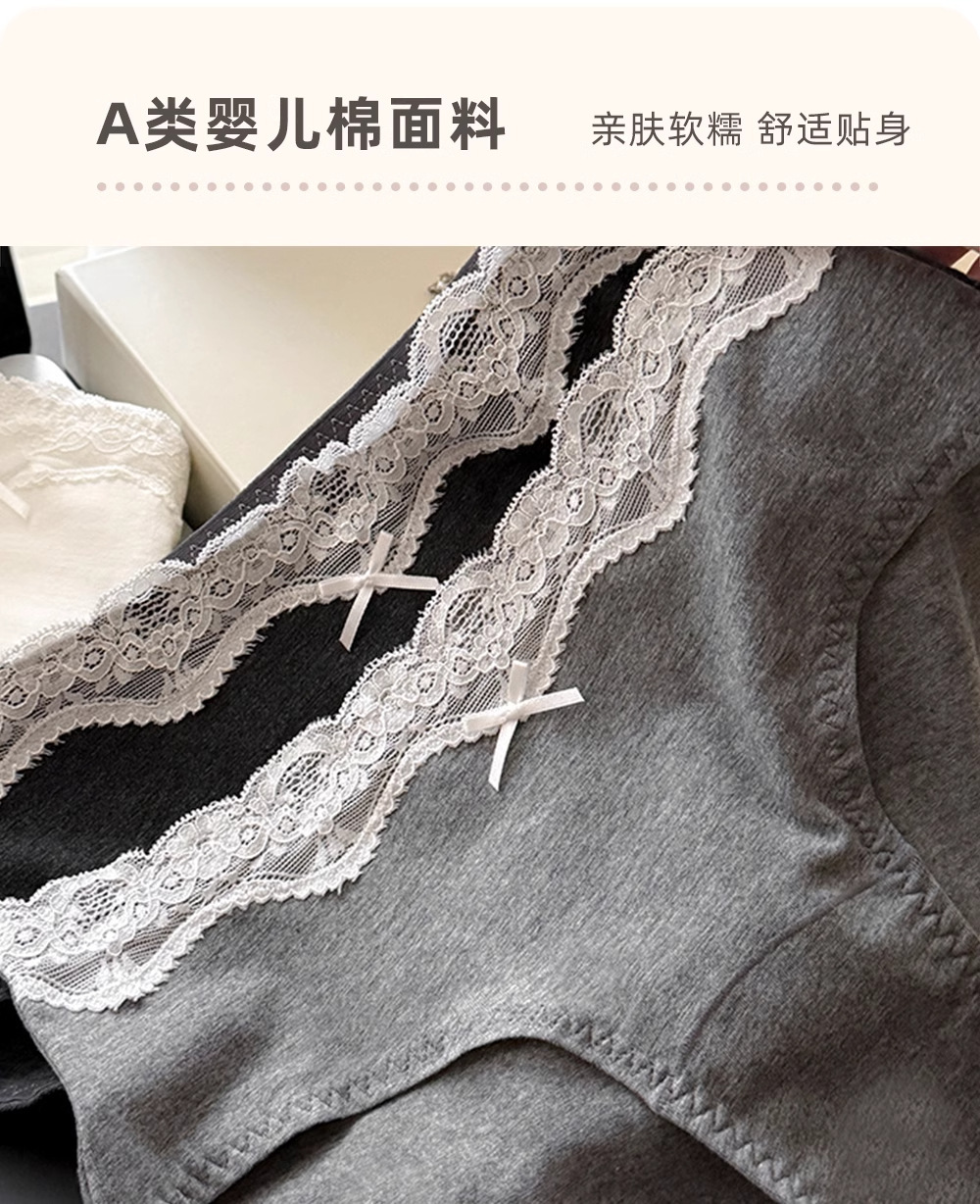 法式复古蕾丝A类婴儿棉女士内裤舒适10A抑菌女士三角裤中腰全棉裆