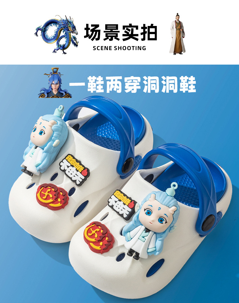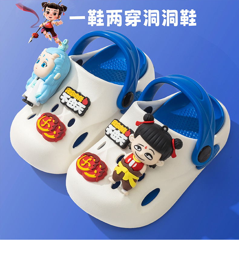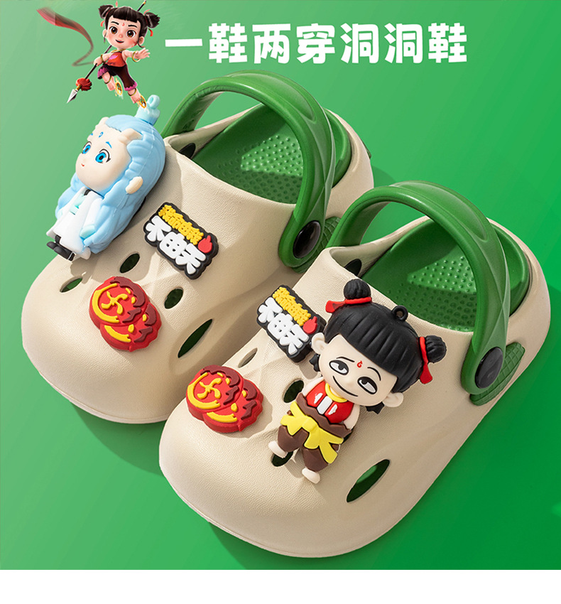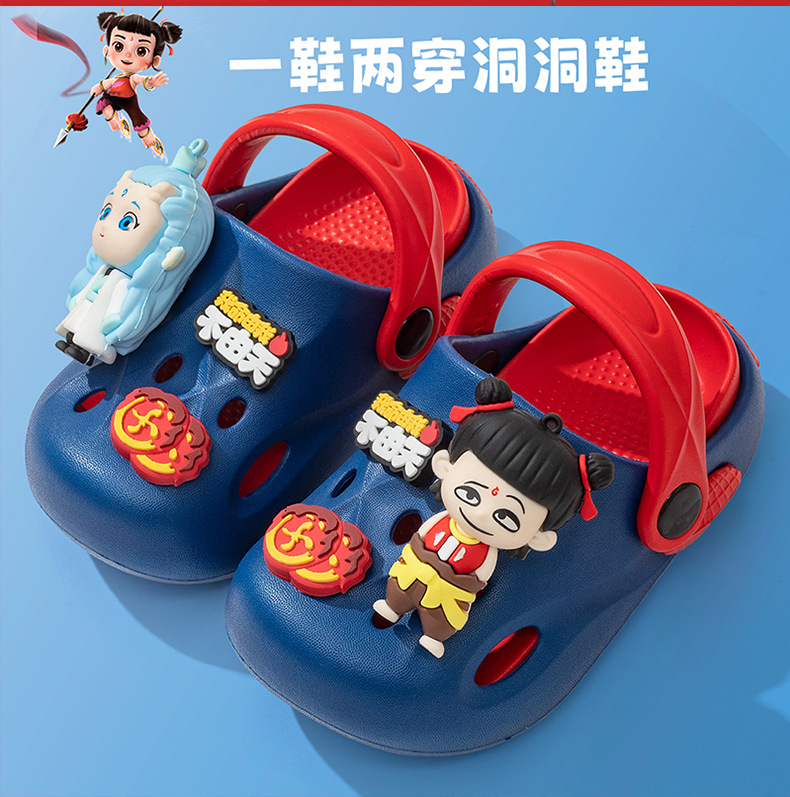 Nezha 子供下駄 2025 夏の新漫画男の子スリッパ屋外ノンスリップソフト底女の子包頭スリッパ