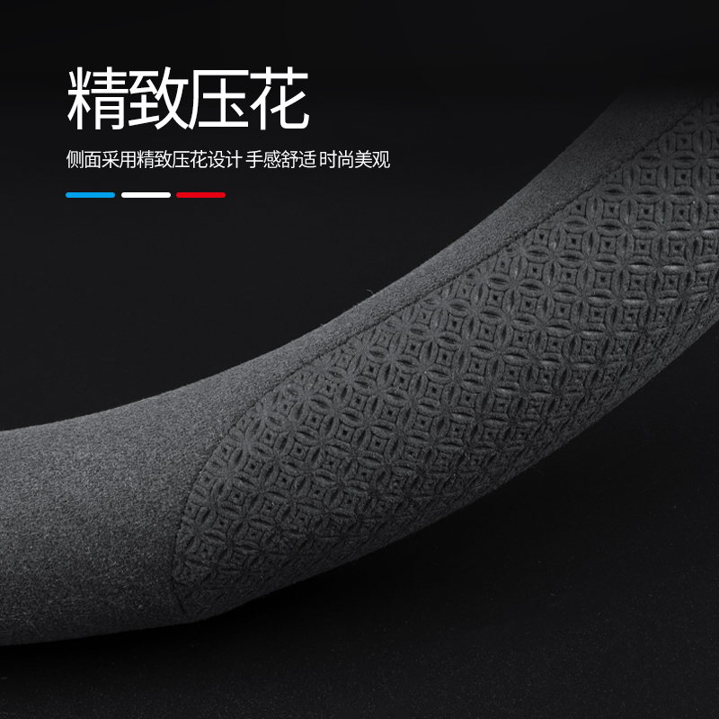 理想的な L6/L7/L8/L9/MEGA ステアリングホイールカバー カーボンファイバースエード超薄型本革滑り止め車のハンドルカバー