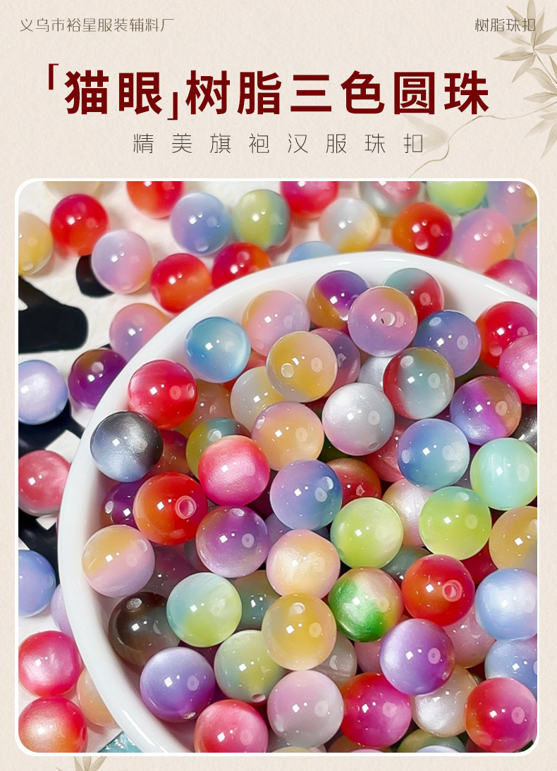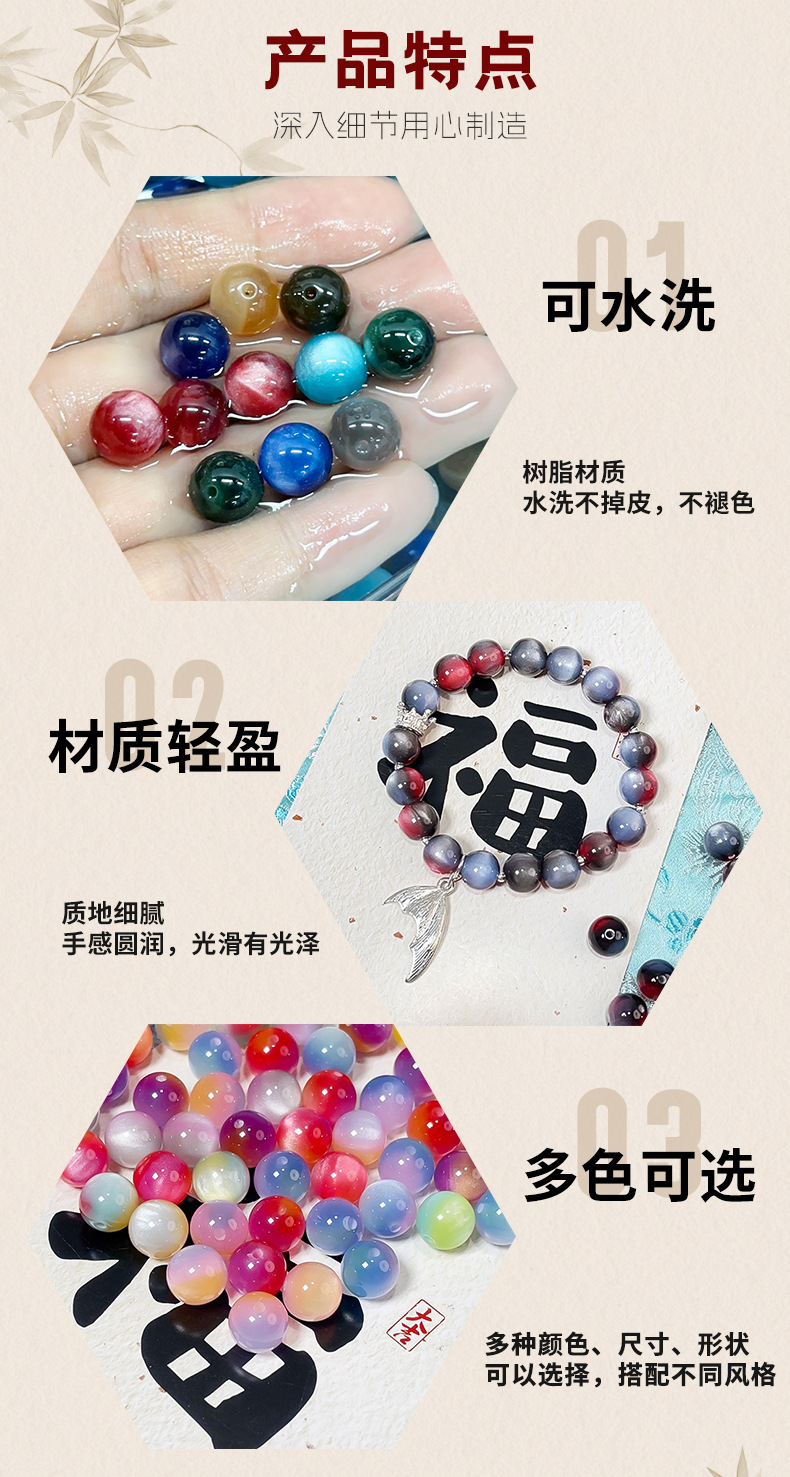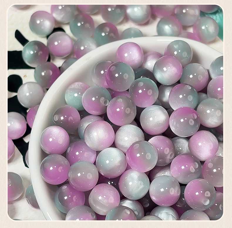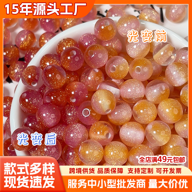 8mmUV紫外线感光变色猫眼石树脂珠手工diy圆珠手链散珠串珠配珠