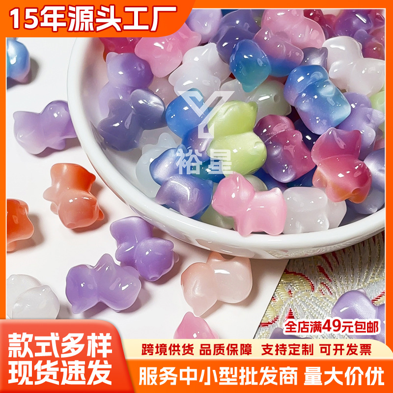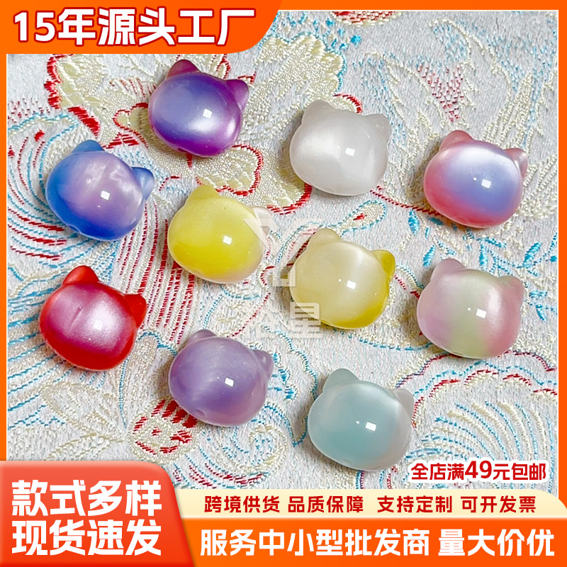 彩色渐变仿猫眼石大猫猫头树脂散珠子diy挂件吊坠手机链饰品配件