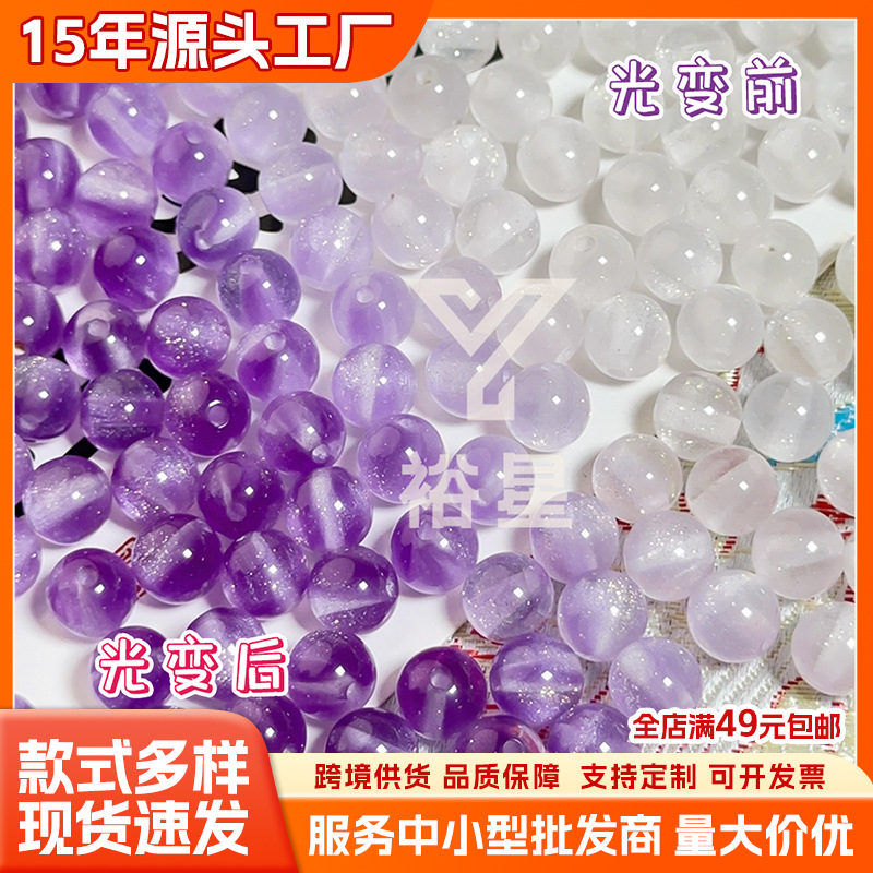 UV紫外线遇光变色树脂夜光溏心圆珠手工diy串珠散珠饰品配件材料