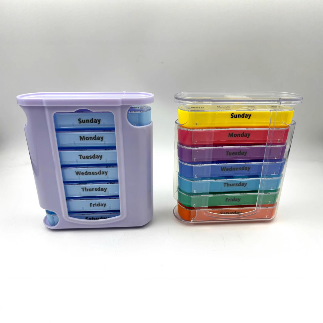 ✅ 28コンパートメントピルボックス カラフルなピルボックス引き出しピルボックス 1週間ピルボックス 28コンパートメント7日間ピルボックス プラスチックピルボックスロゴ