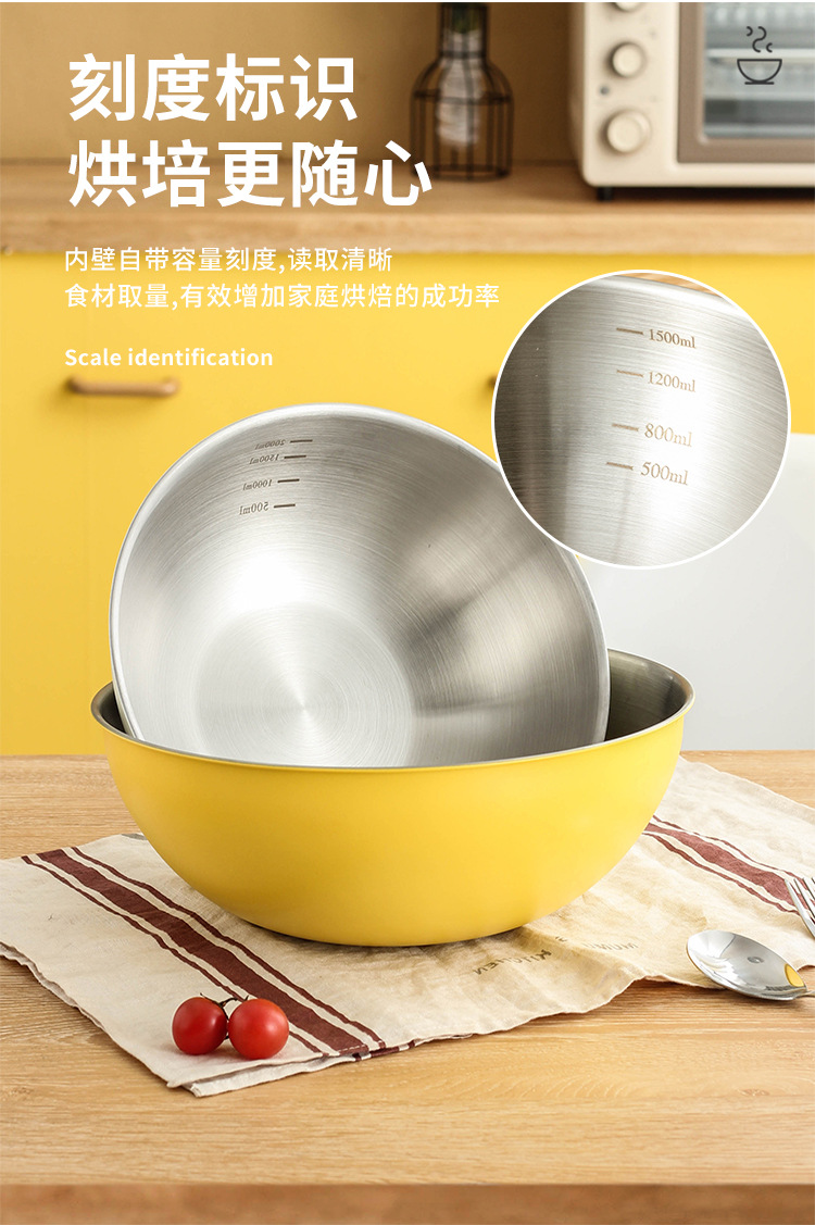 ステンレス製サラダボウルのラーメンボウルの料理ボウルの韓国式の目盛り付きサラダボウルの卵と洗面器の多くのボウルを厚くする