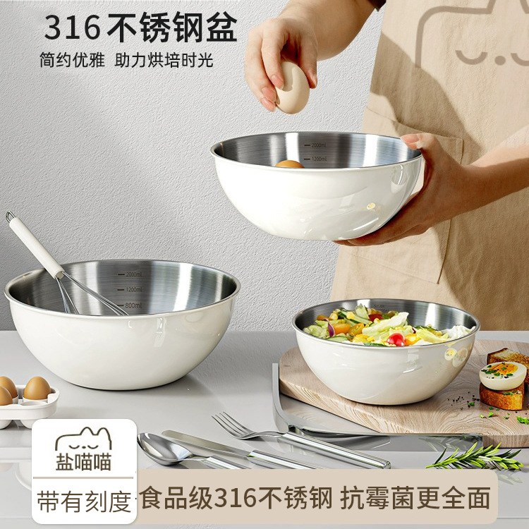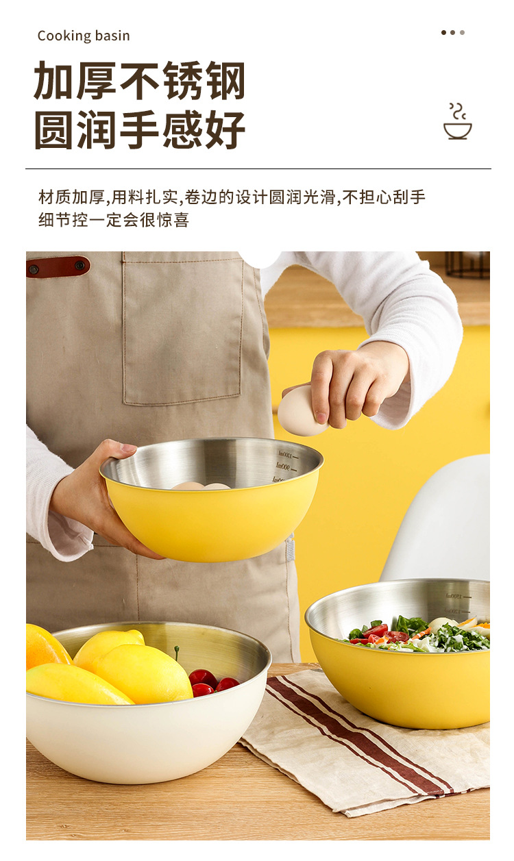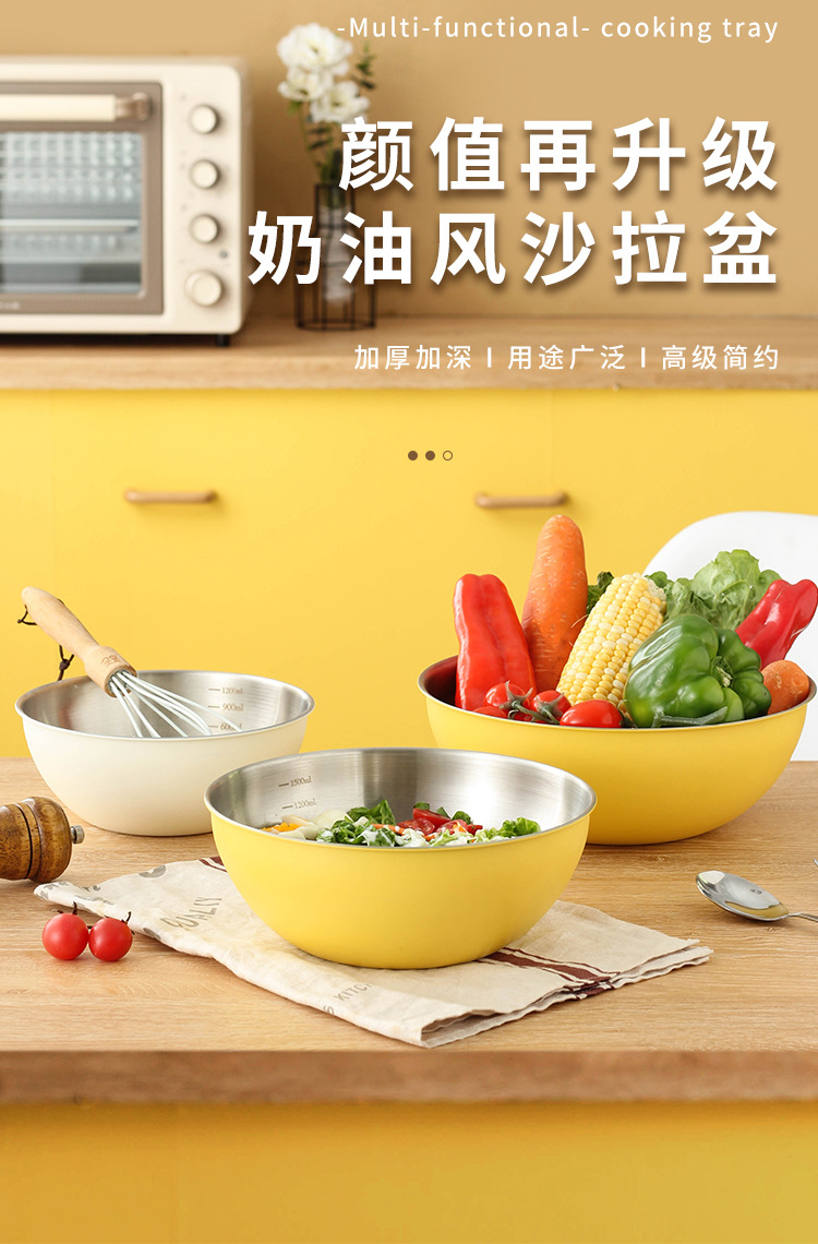 ミルク白ステンレスサラダボウル家庭用凉練料理ボウルと麺揉み卵料理ボウル果物サラダボウル
