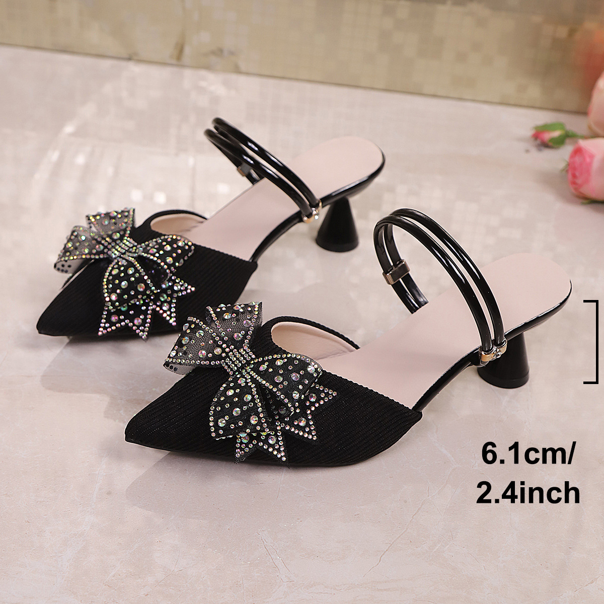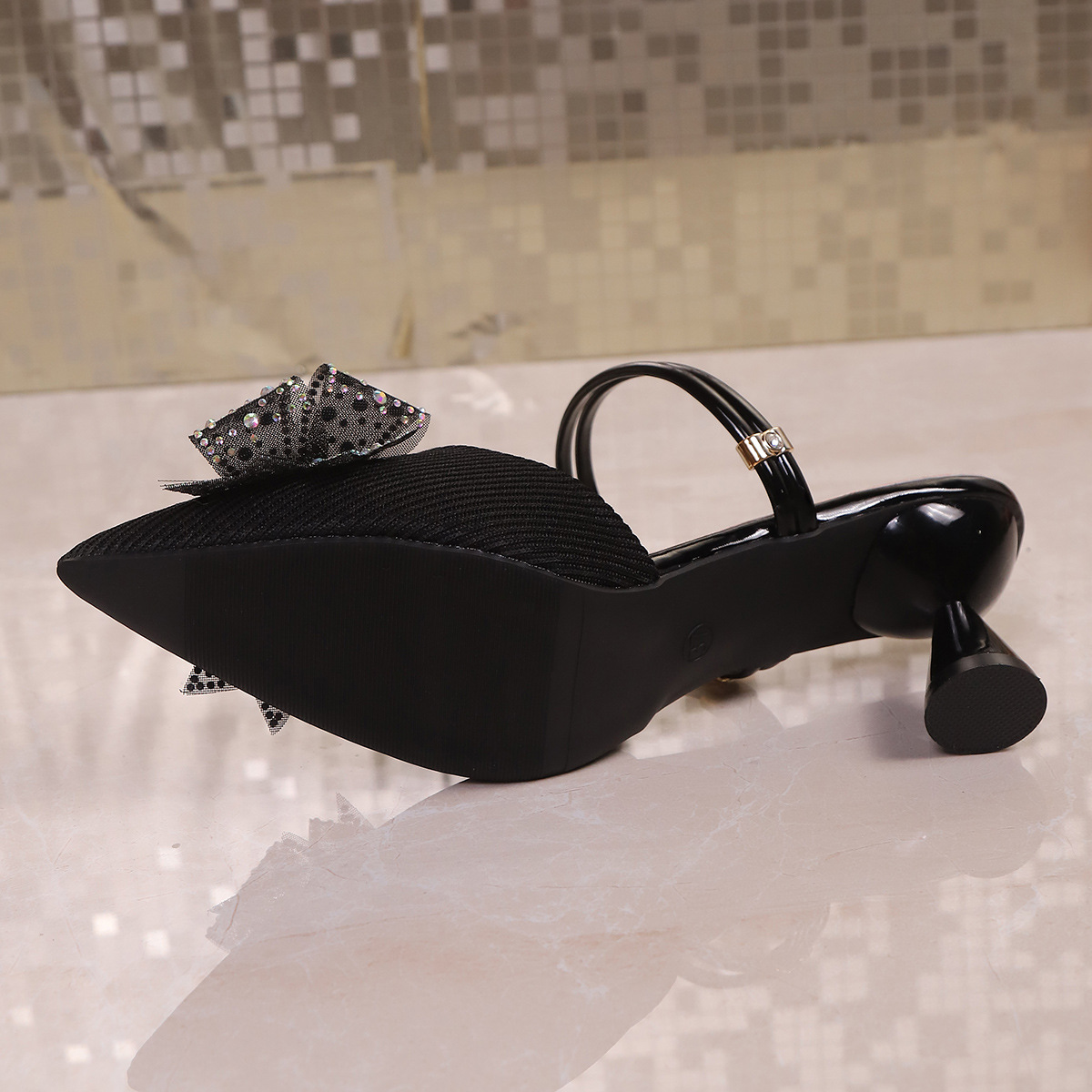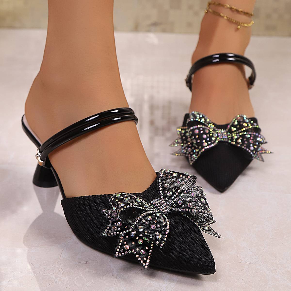 国境を越えた貿易婦人靴 2025 夏の新しいスタイルの気質ポインテッドトゥリボンラインストーン多用途ツーウェア包頭スリッパサンダル