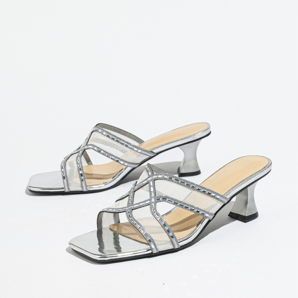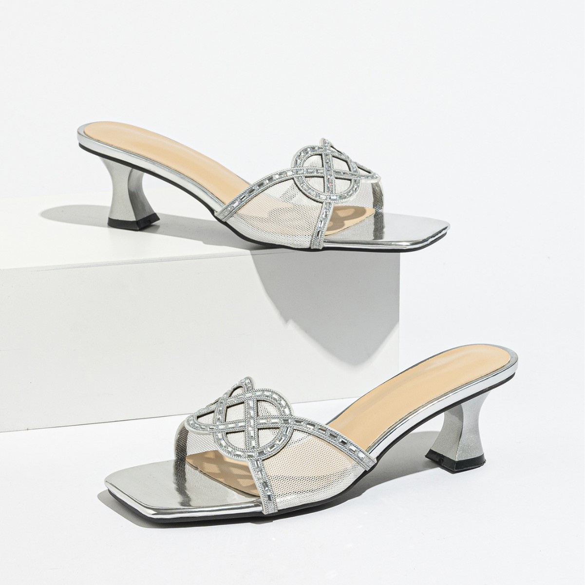 女鞋2025年夏季新款方头高跟女士凉鞋 经典潮流百搭时尚跨境批发