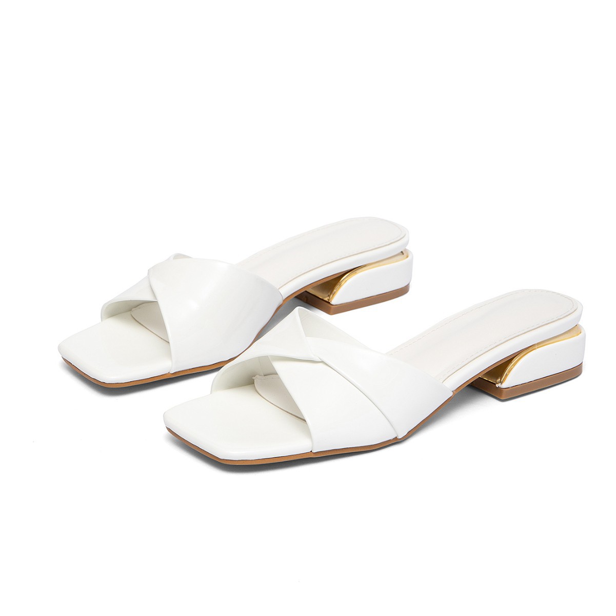 2025夏季新款韩版粗跟拖鞋女外穿方头露趾一字拖时尚中跟凉拖批发