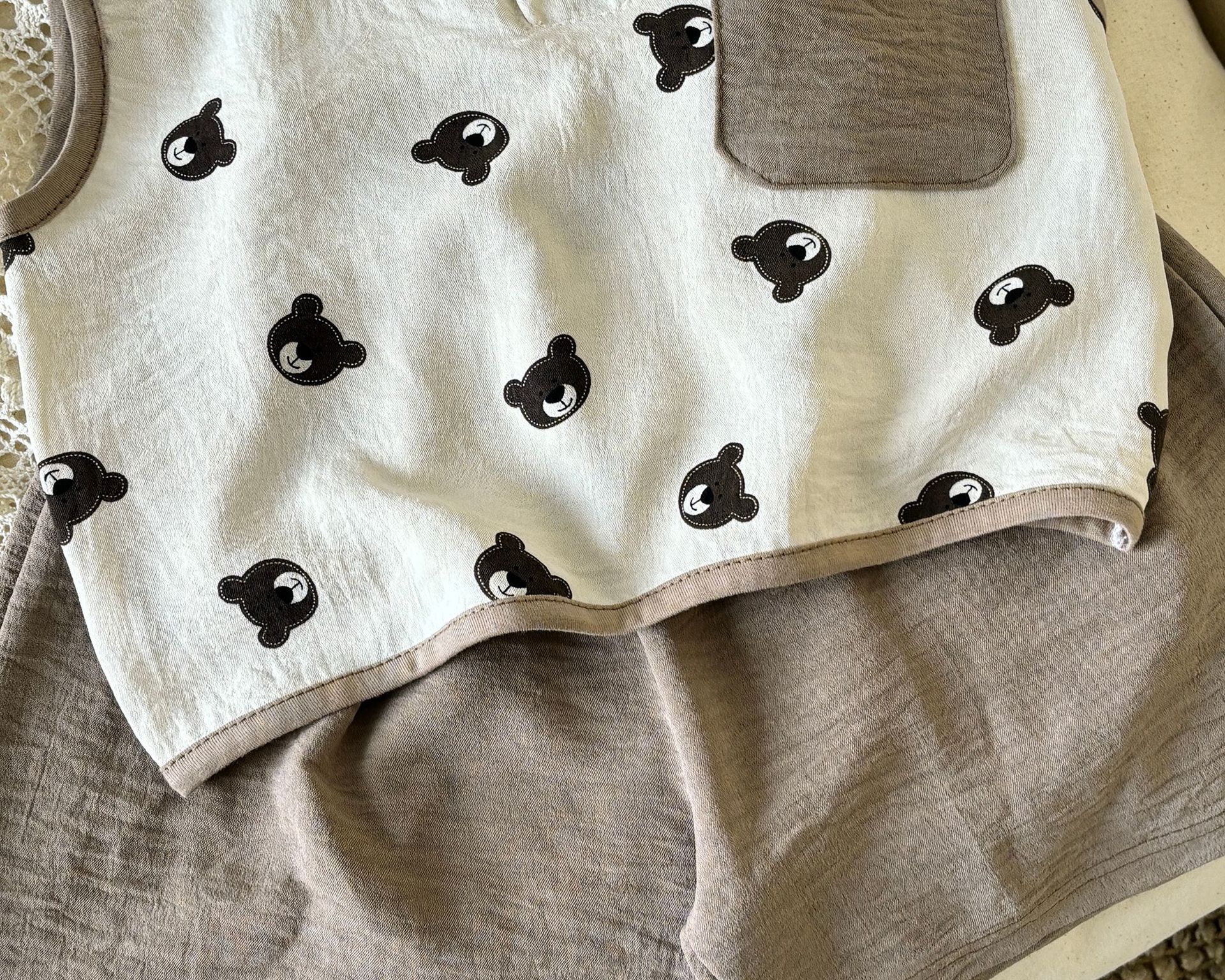 ベストショーツスーツ-スカイブルー,ベストショーツスーツ - クリームベアヘッド,タンクトップショーツセット-チョコレートベア,タンクトップショーツスーツ - ライトピンク