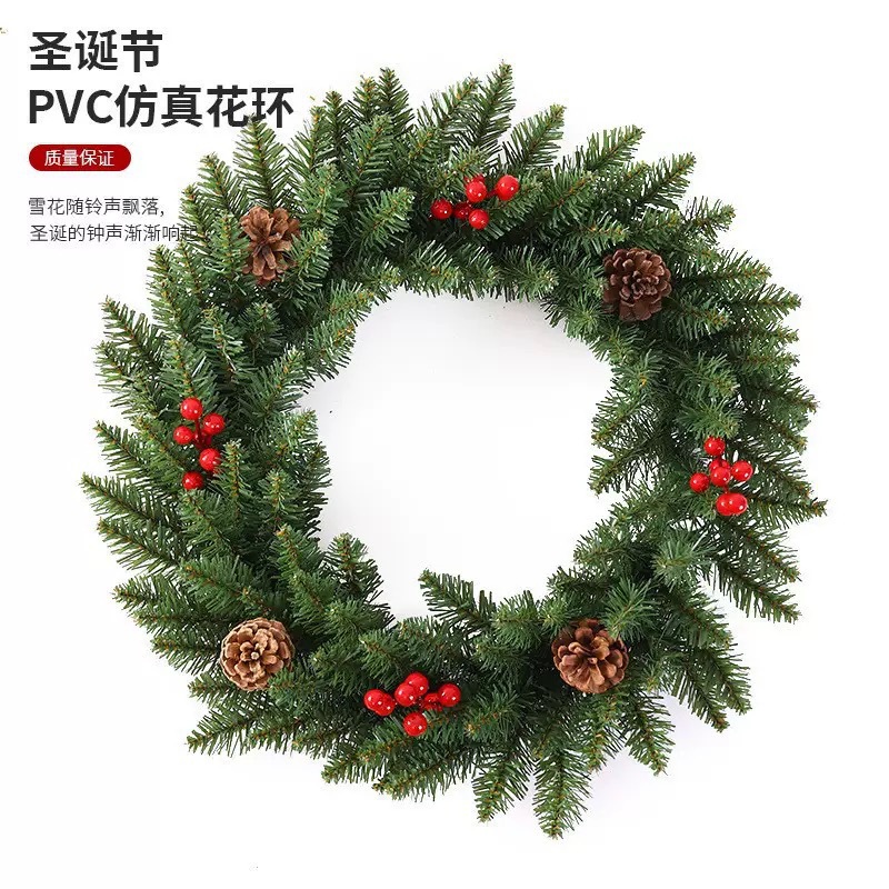 凯锦跨境圣诞节植绒花环DIY家居装饰品前门门挂场景布置楼梯挂饰