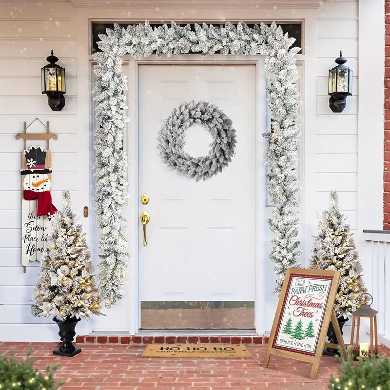 Snow Fir クロスボーダー Amazon クリスマス植毛籐暖炉装飾階段装飾品 PVC 玄関ドアペンダント