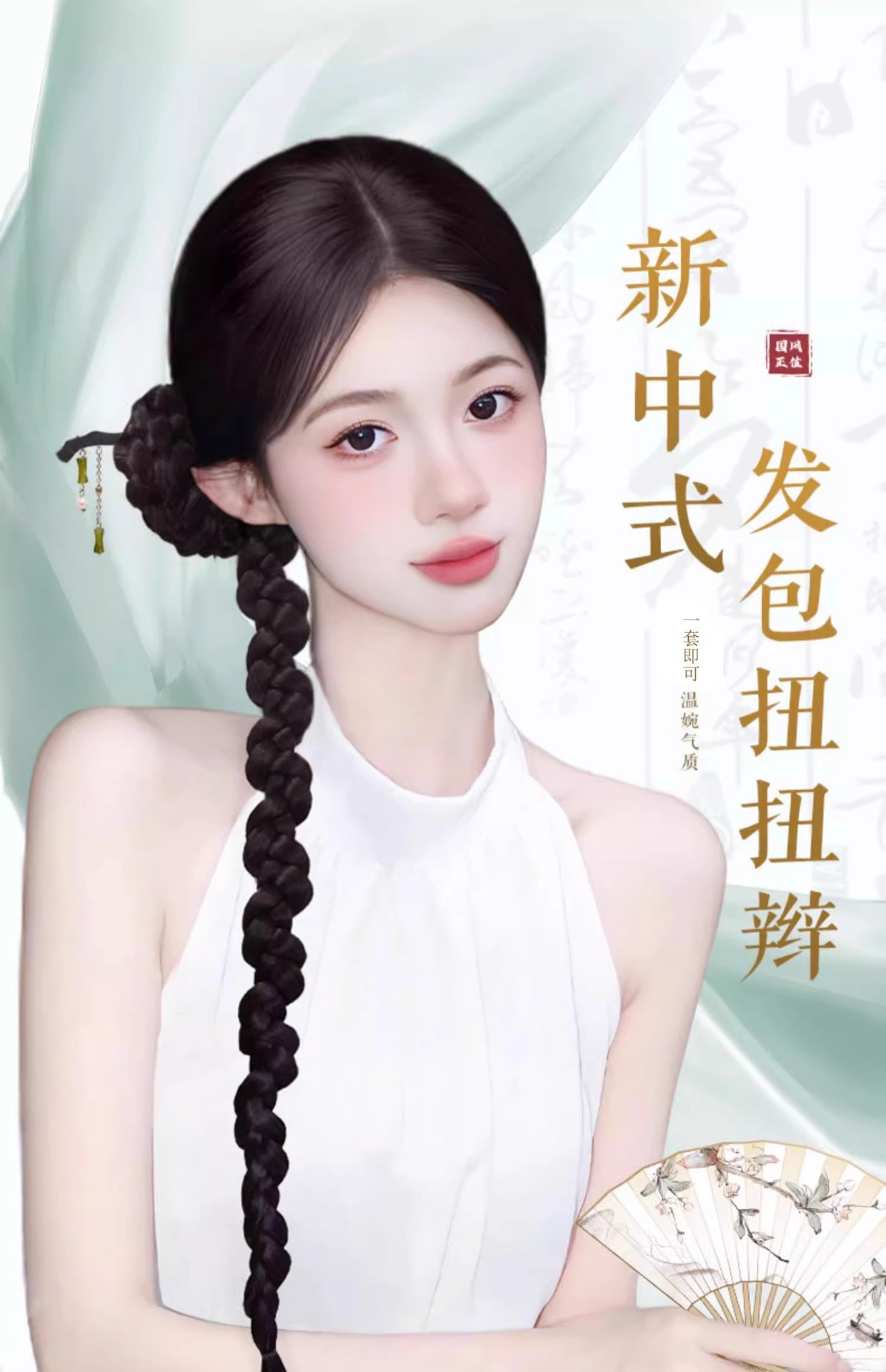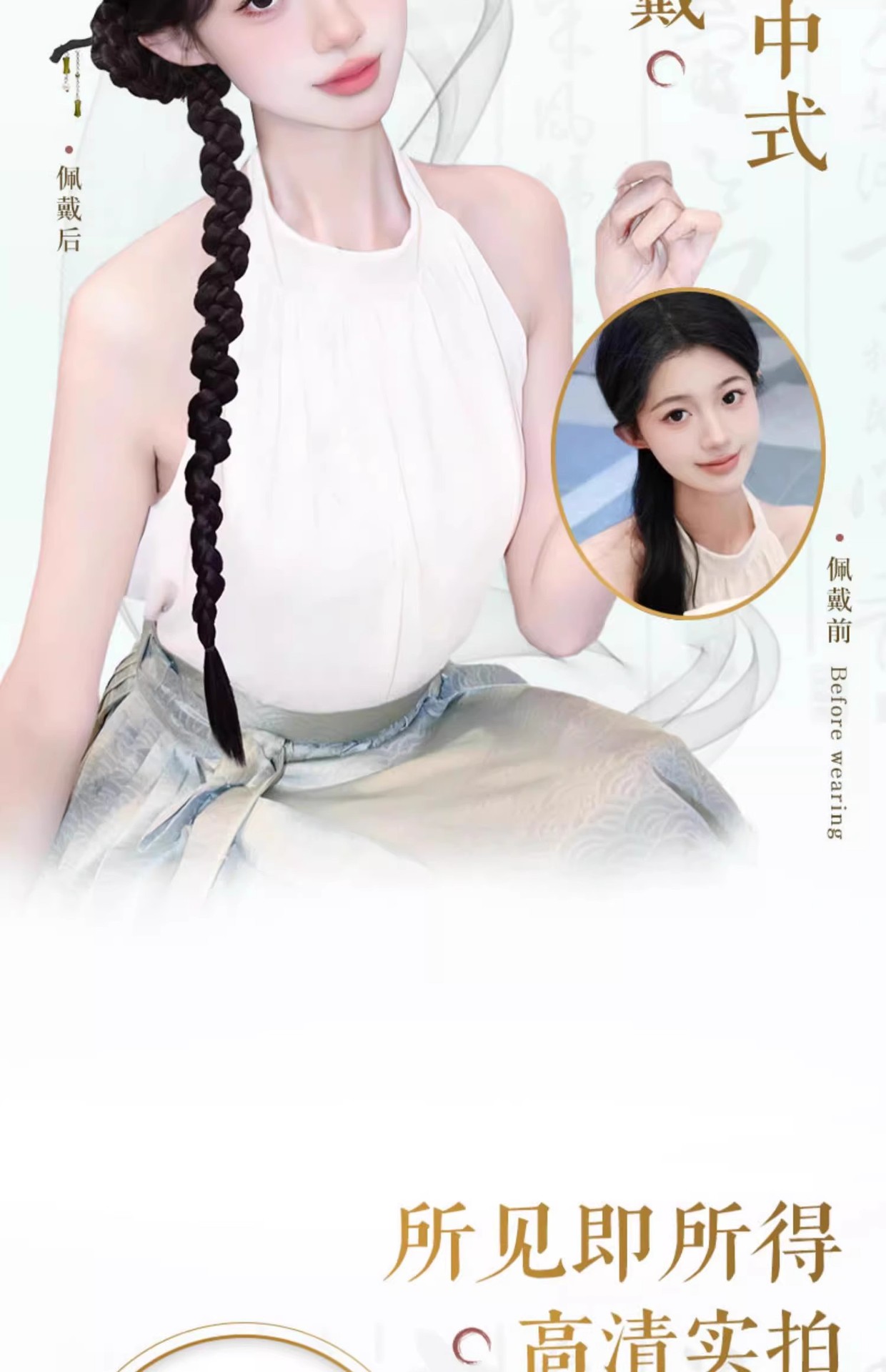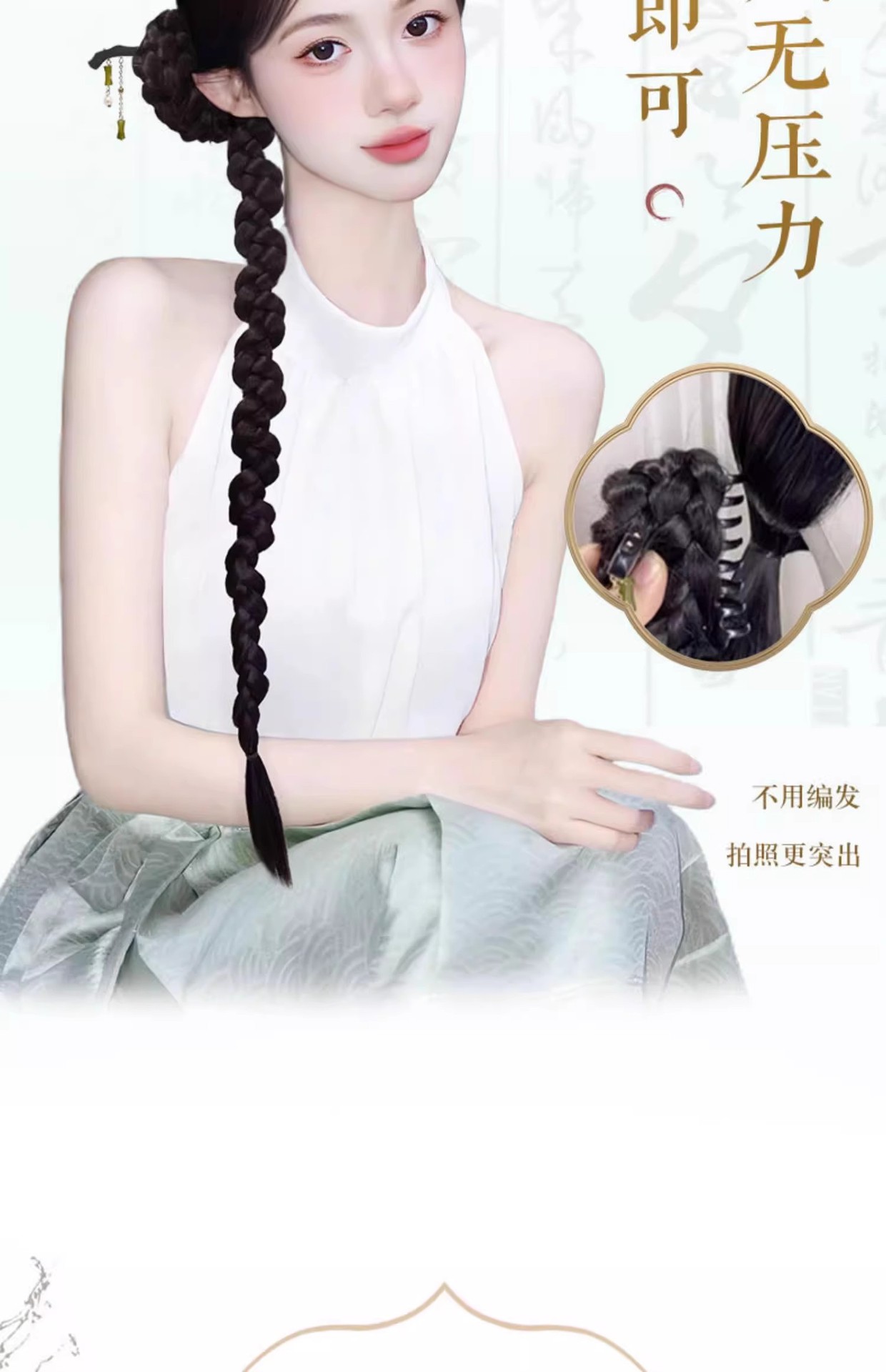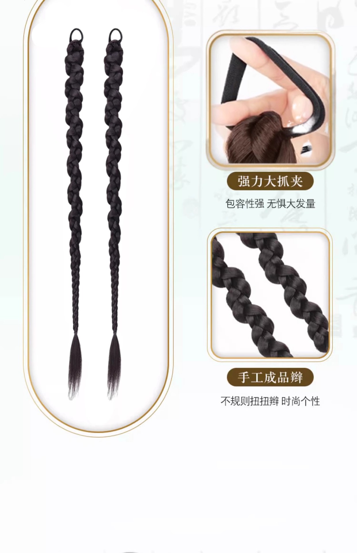 ソースファクトリーウィッグ三つ編み女性の新しい中国風ツイスト三つ編みヘアサイドタイシミュレーション古代スタイル漢服チャイナドレス偽