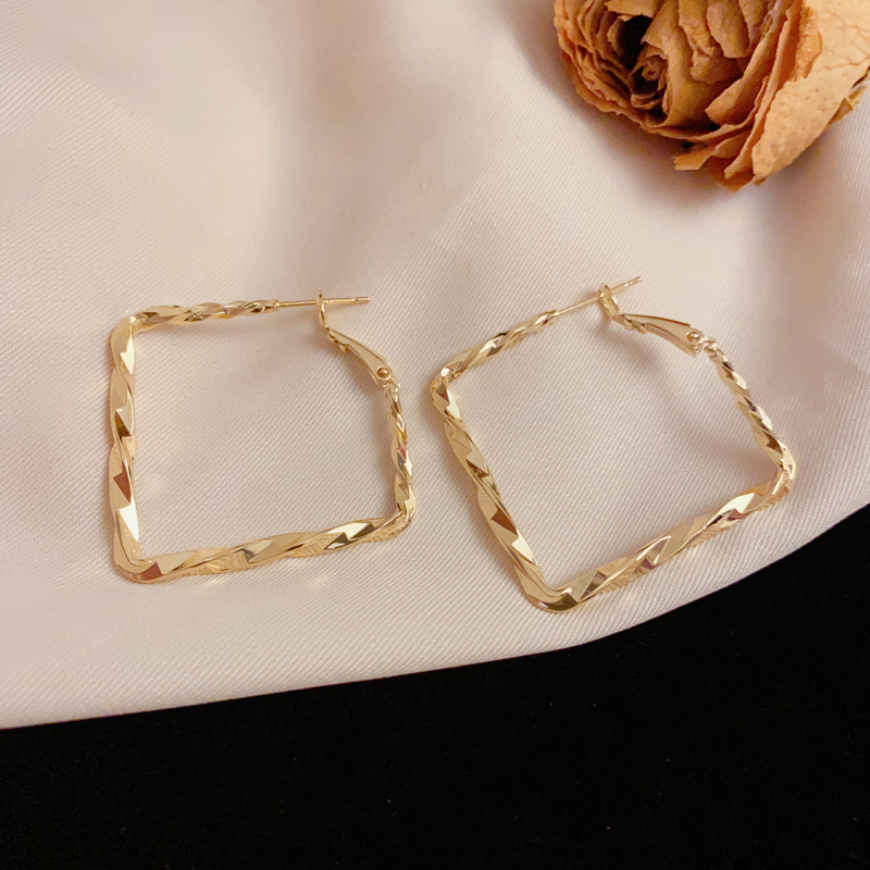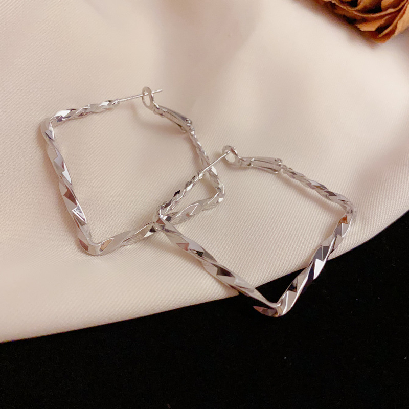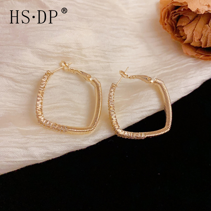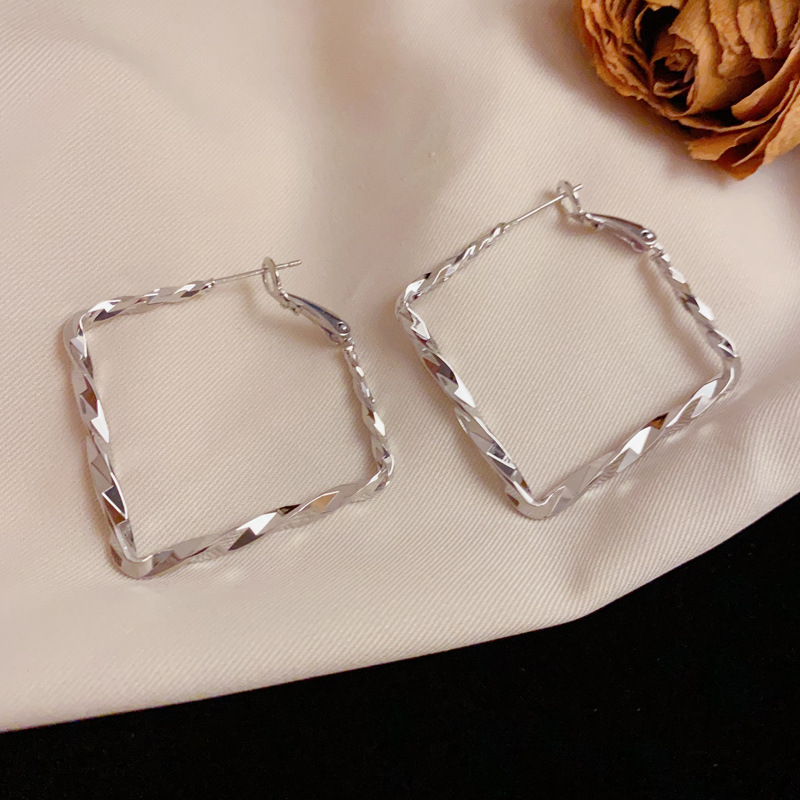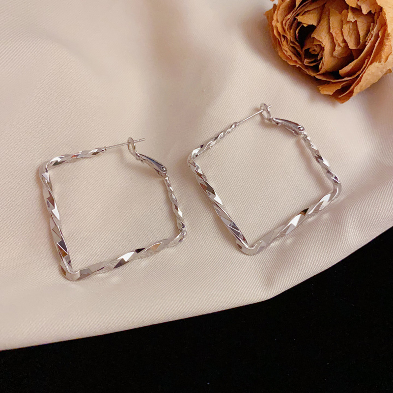 欧美亚马逊跨境时尚镶钻金属菱形耳圈女个性轻奢高级感冷淡风耳环