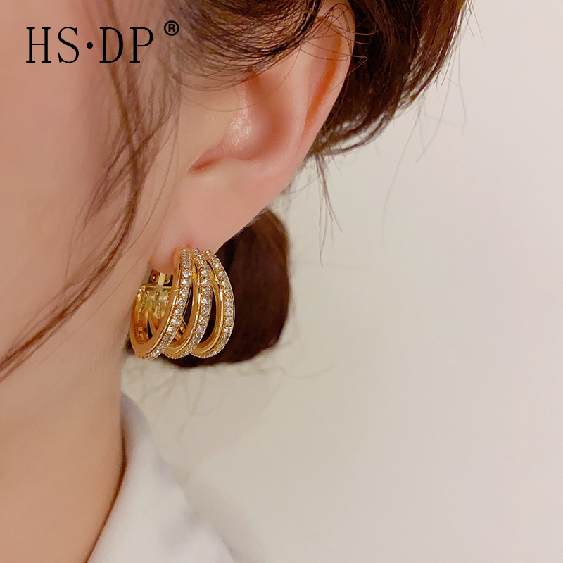 洗練された冷たい風ファッション多層ジルコン耳輪高級感耳ボタン小衆デザイン感軽贅沢名媛風イヤリング