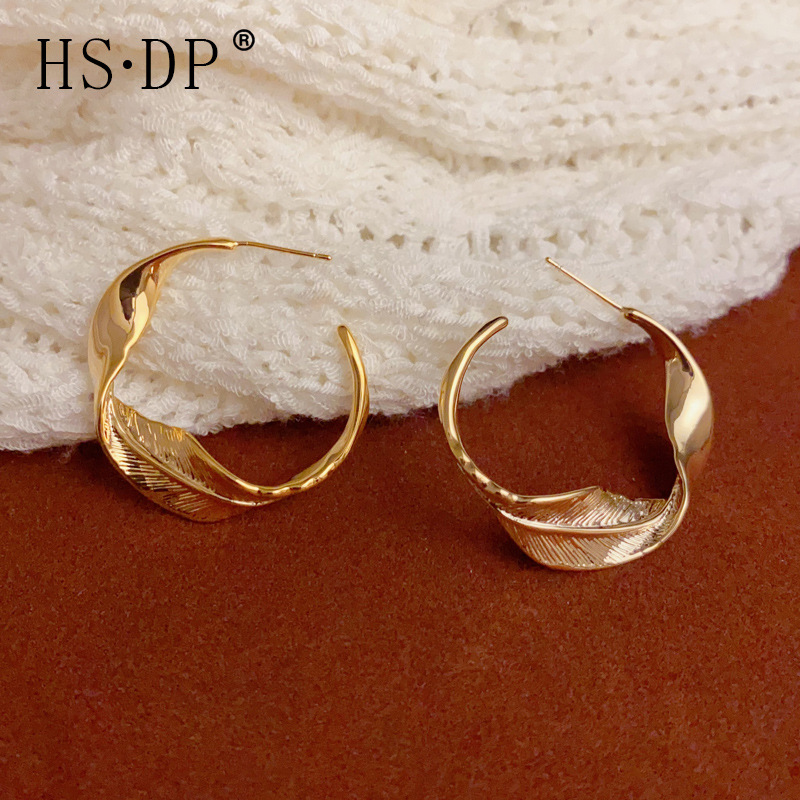 シンプルなレトロなファッションの高級感には、ドリルの金属リングのイヤリングが入っています。