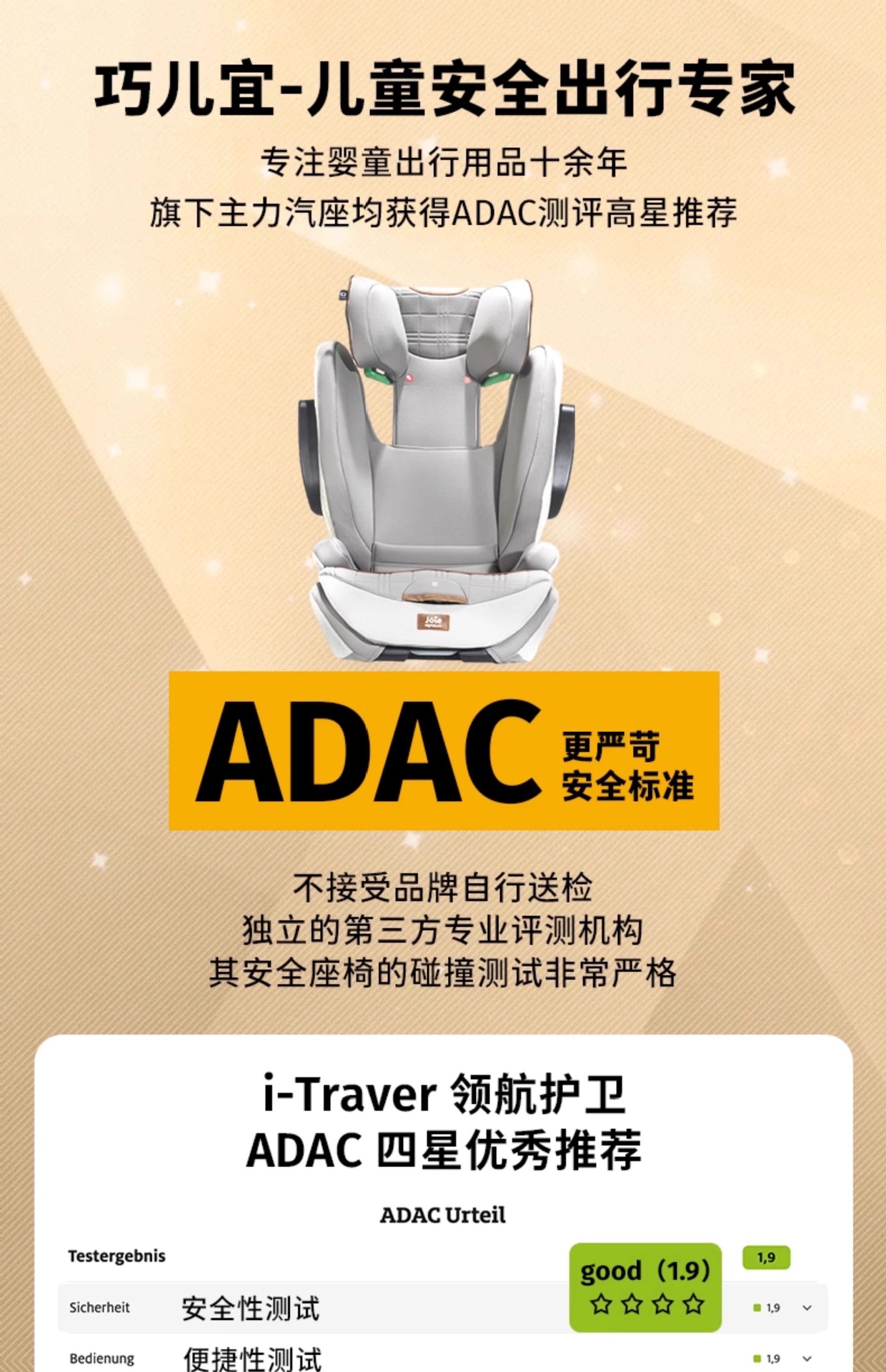 Joie巧儿宜I-Traver大童安全座椅3一12岁ADAC评分isize规格增高垫