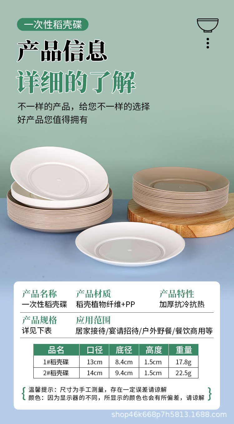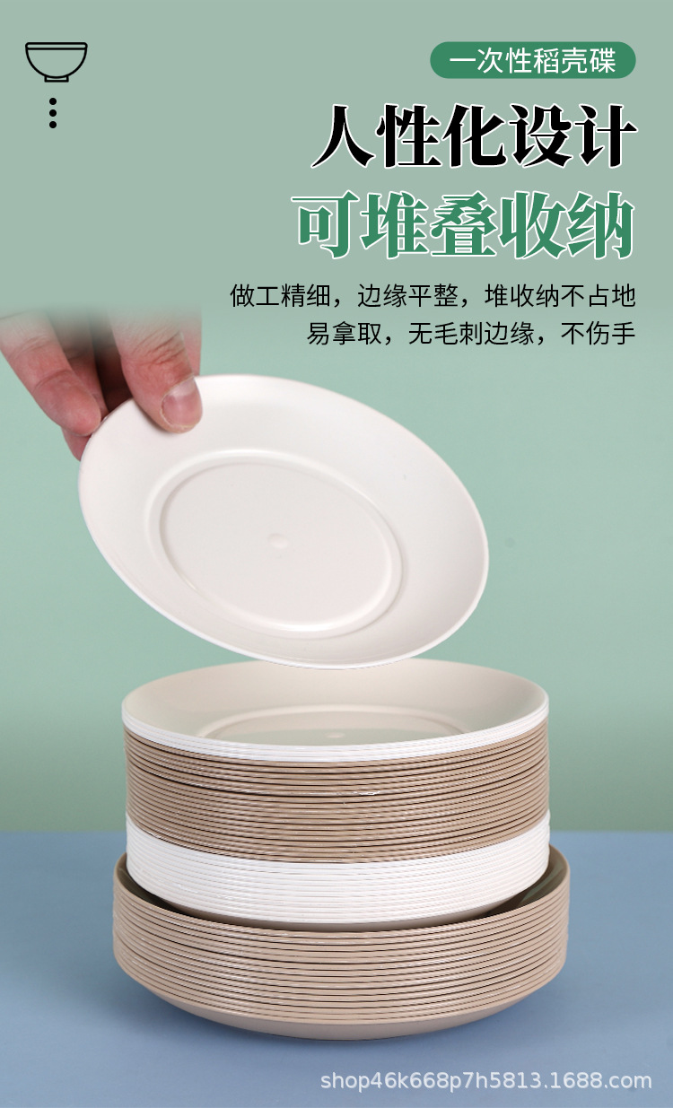 一次性盘子稻壳耐高温食品级加厚餐盘家用菜盘商用酒席盘碟环保