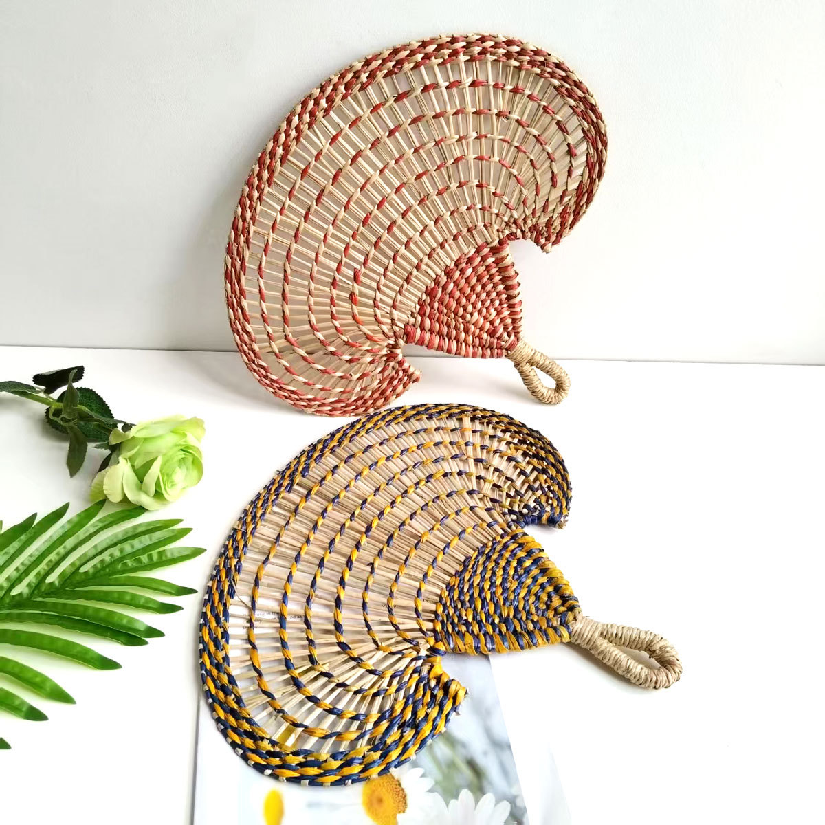 【注意】因是纯手工制作,非机器量产,产品会有些许瑕疵(如小黑点断藤、疏密不一、毛刺等),这些均不属于质量范围,要求高的亲慎拍!因草编扇子材质原因,产品需要用胶水辅助固定,介意的亲勿拍哦!