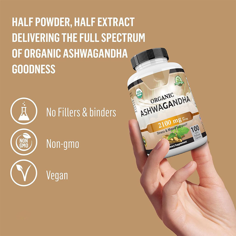 梱包仕様 オーガニック アシュワガンダ カプセル 100 カプセル/ボトル