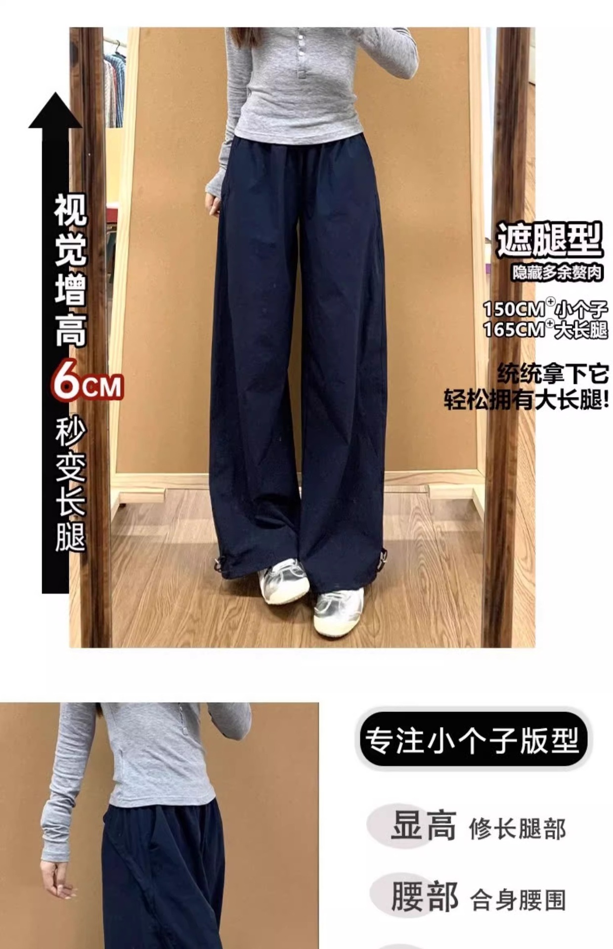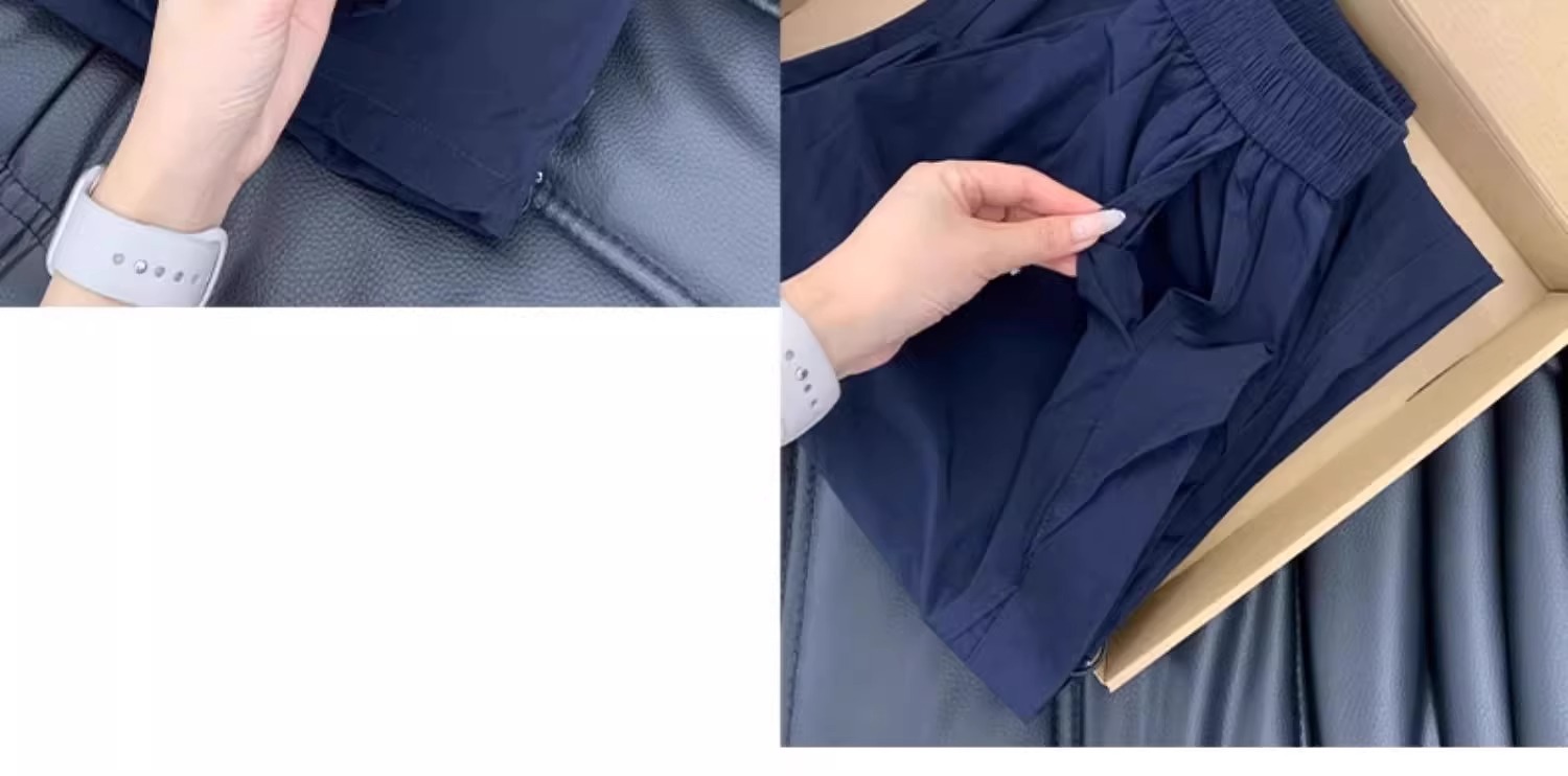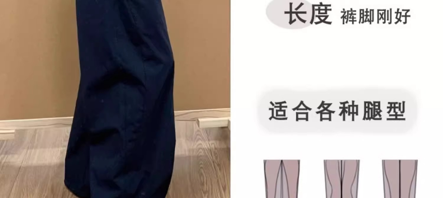 青い速乾工装ズボンの女性の夏の薄いタイプの2025新型のゆったりしたストレートのカジュアルな小さい背の広い足のスポーツのズボン