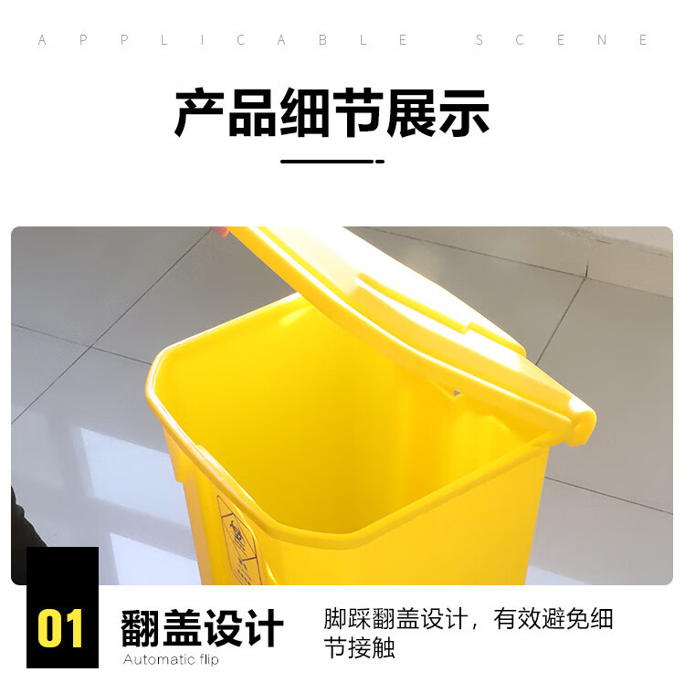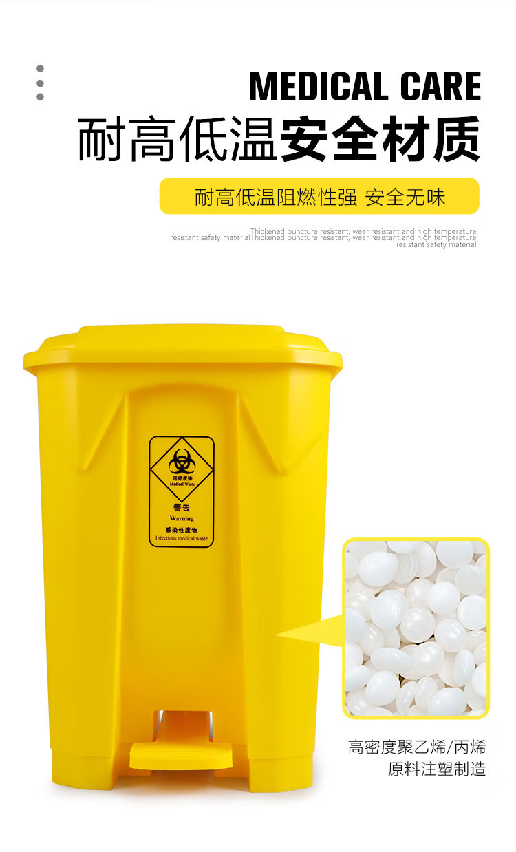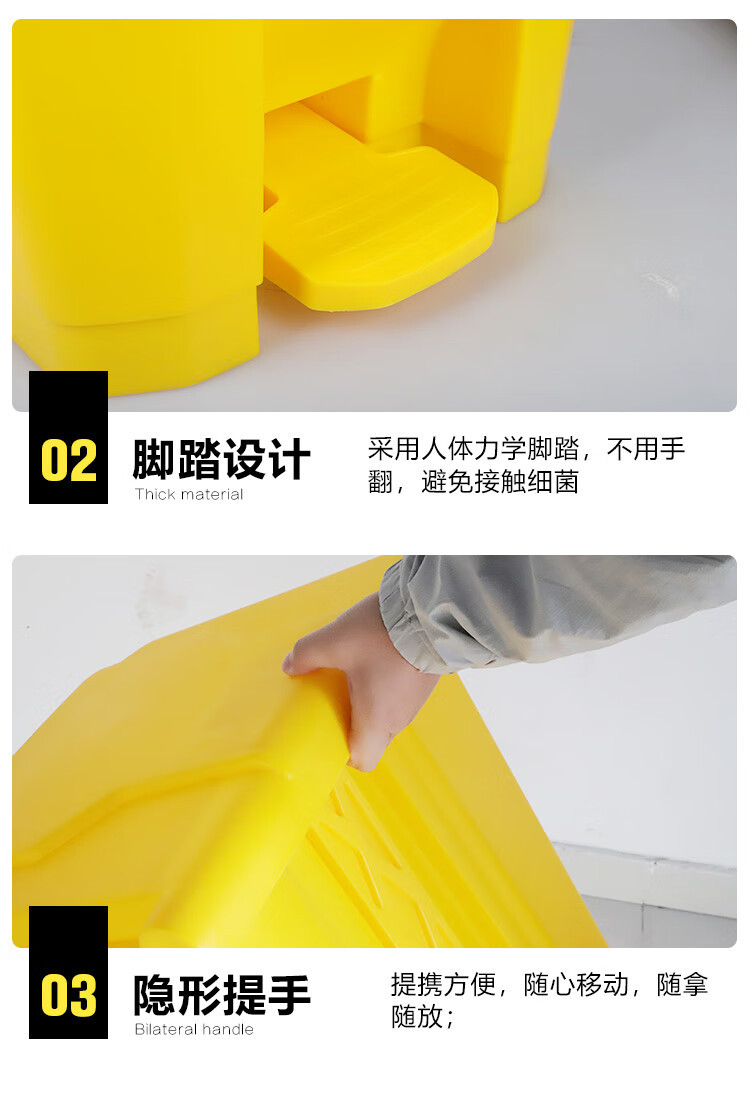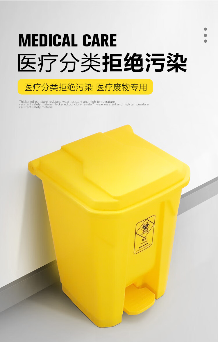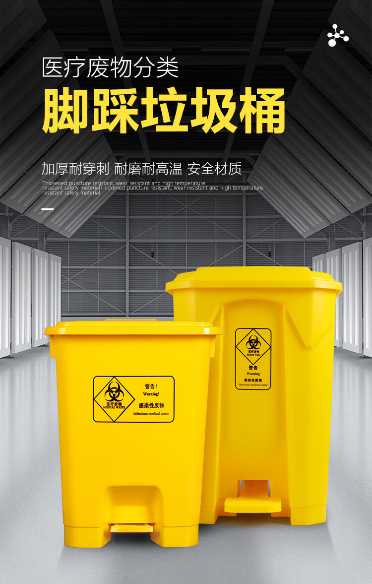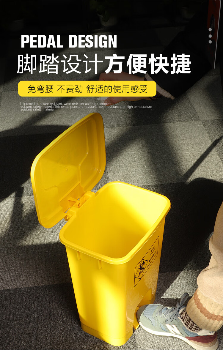 VLEN 医療廃棄物ゴミ箱 黄色のゴミ箱 大型フットペダル 蓋付き 黄色のクリニック 病院の汚染物質