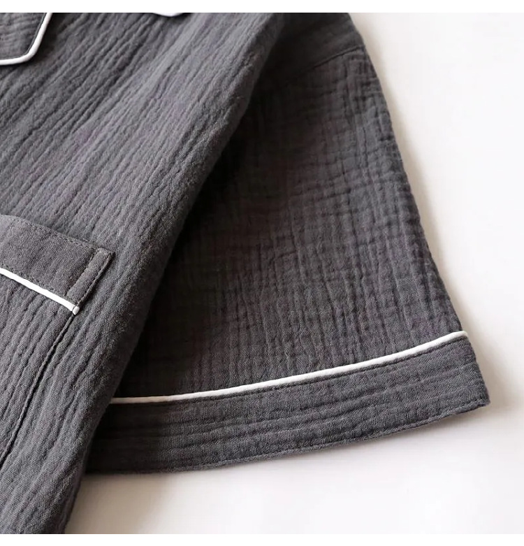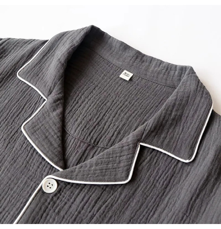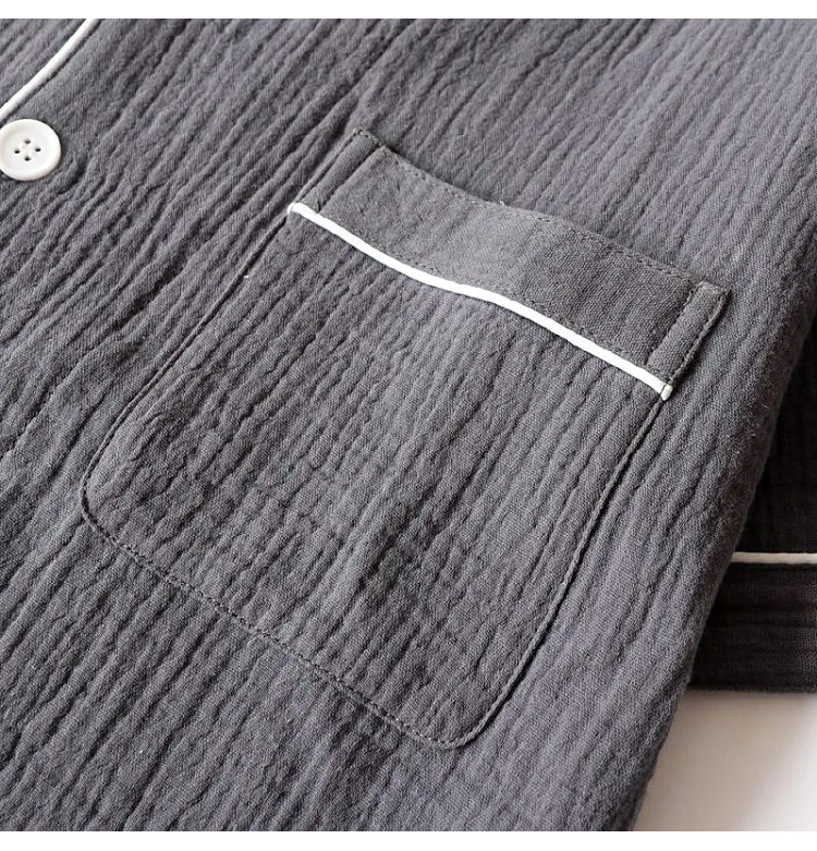 綿 100% ガーゼメンズ純綿パジャマメンズ夏半袖カーディガンカジュアルウェアラブルコットンホーム服男性用
