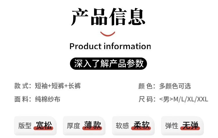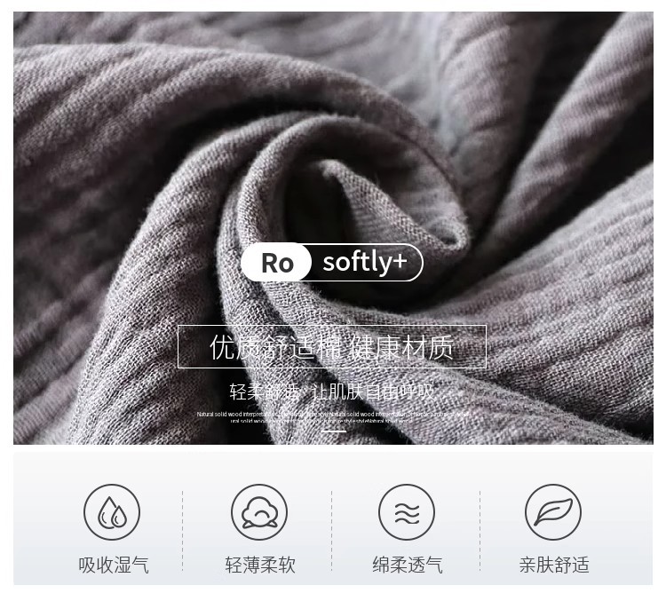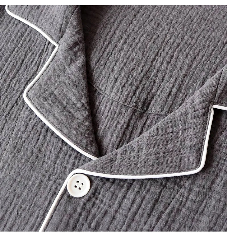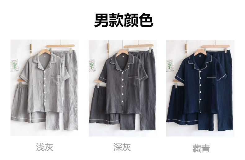 短袖长裤男士纯棉睡衣夏季新品双层纱全棉短袖长裤套装亲肤透气款