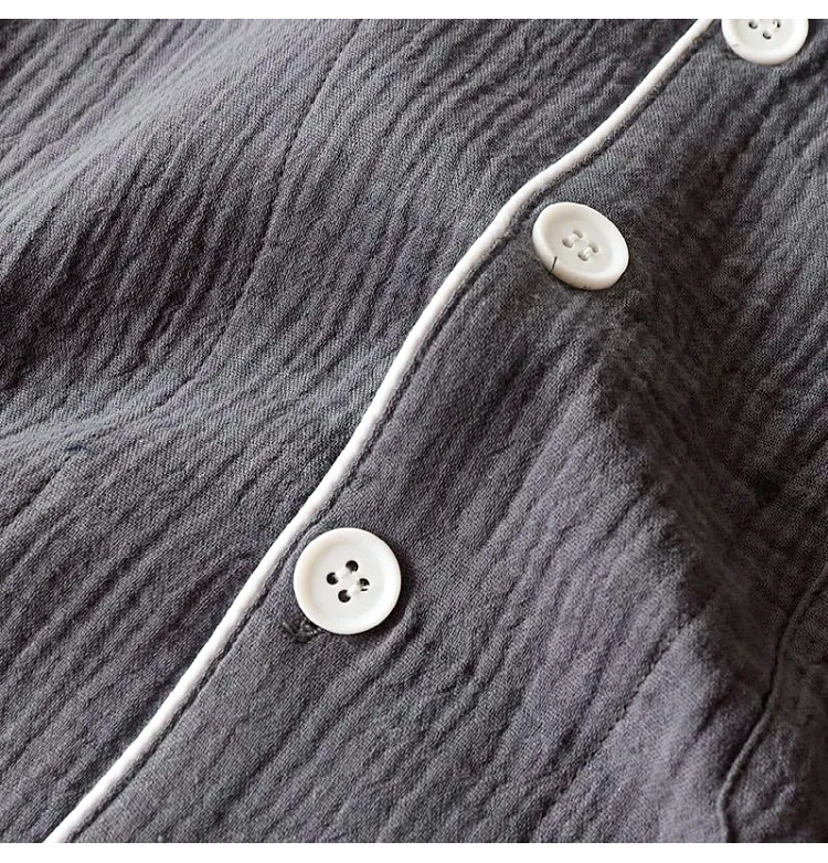 純綿二重ガーゼパジャマ男性夏の薄い春と秋の長袖の純綿純色のゆったりした大きいサイズの家庭服セット