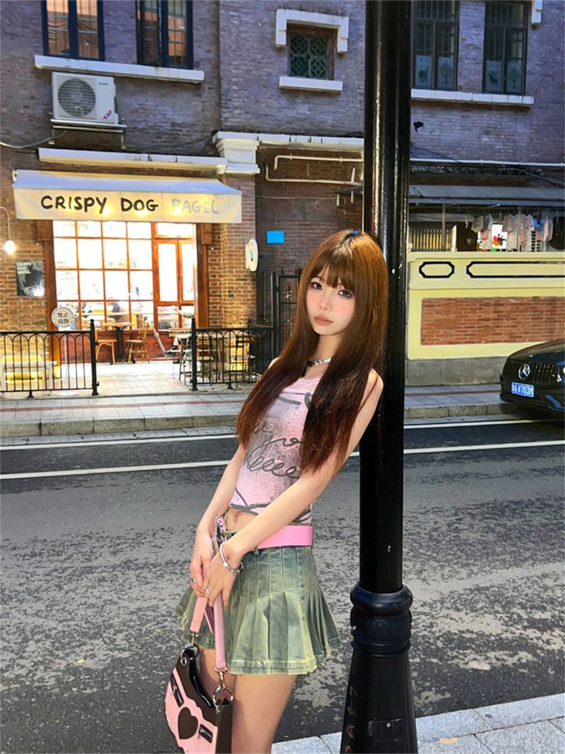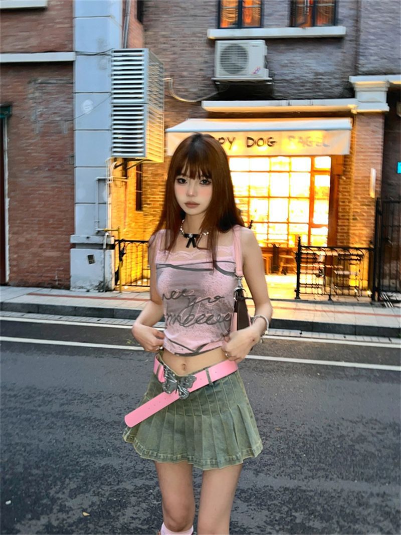 アメリカンホットガールスタイルのセクシーなレタープリントキャミソールレディースサマーデザインスリムフィットノースリーブトップ