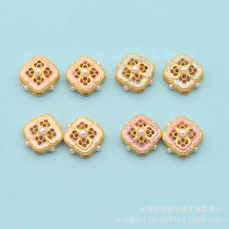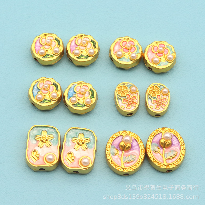 砂金保色中古カラー手描き油絵隔珠散珠DIY愛花粘真珠ビーズアクセサリー
