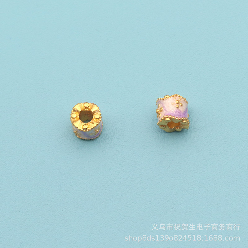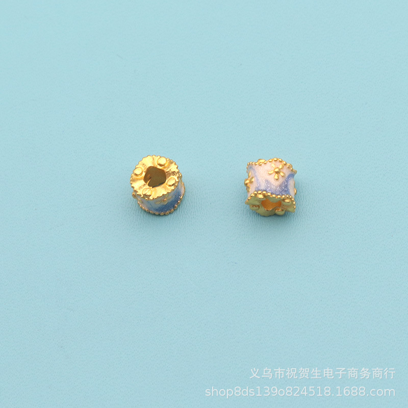 古法金沙金珐琅彩烤蓝滴油通孔圆珠桶珠隔珠diy手链吊坠串珠配件