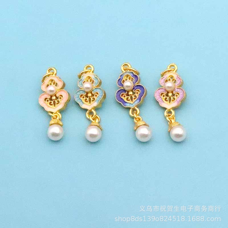 镀金滴油仿翠吊饰diy珍珠合金古风发簪步摇流苏挂件叶子耳环吊坠