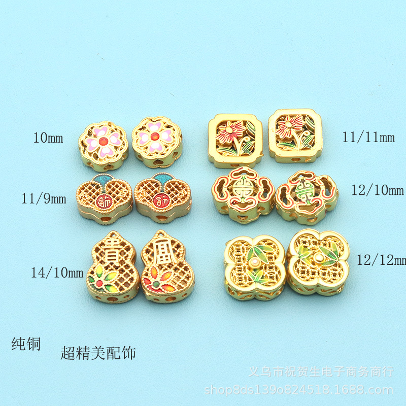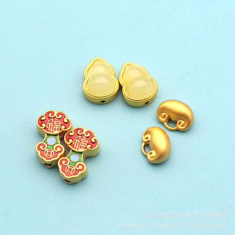保色沙金瓢箪部品ブレスレットビーズ飾り古法金diy如意小ペンダント手串アクセサリーアクセサリー