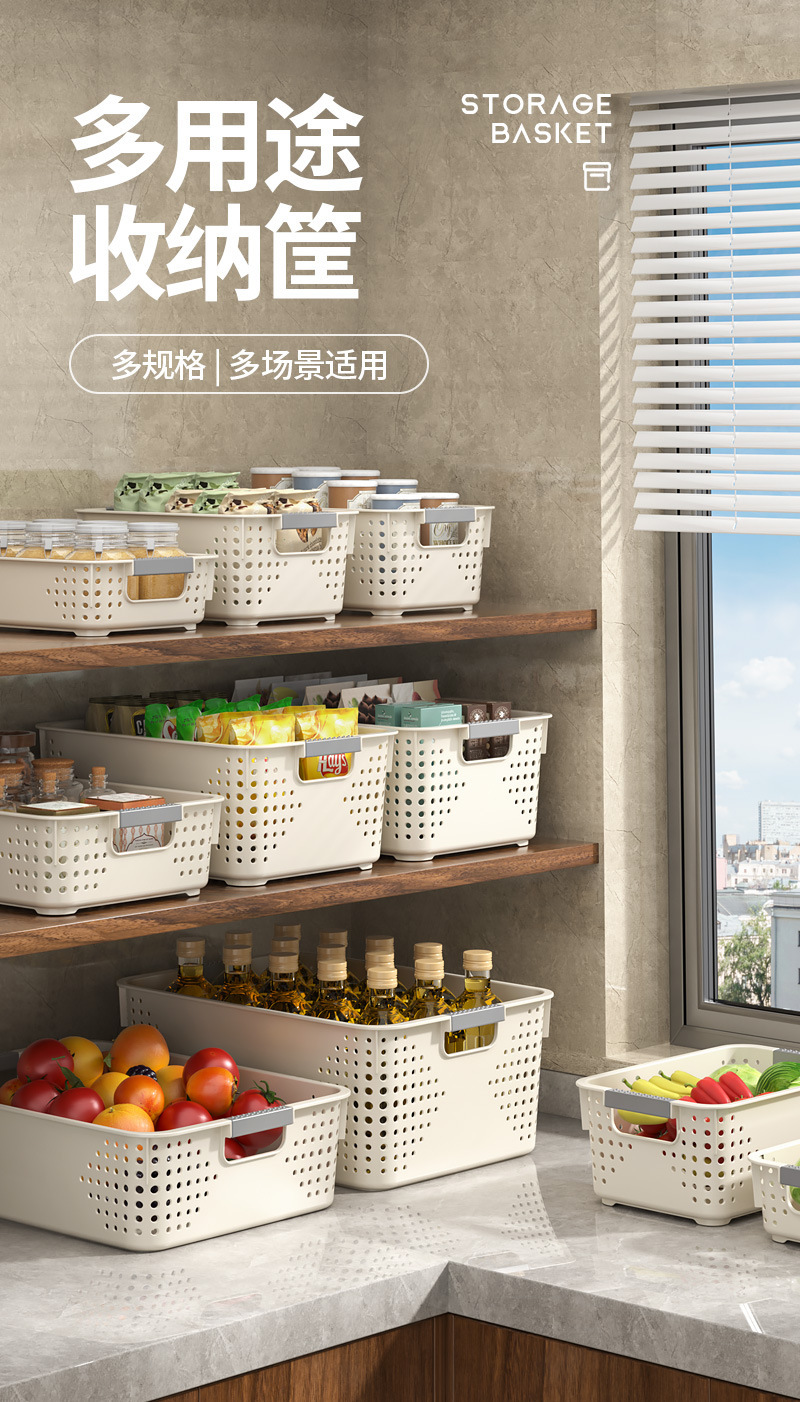 雑物収納かごプラスチックデスクトップ収納箱キッチンキャビネット間食玩具整理かご収納かご卸売り