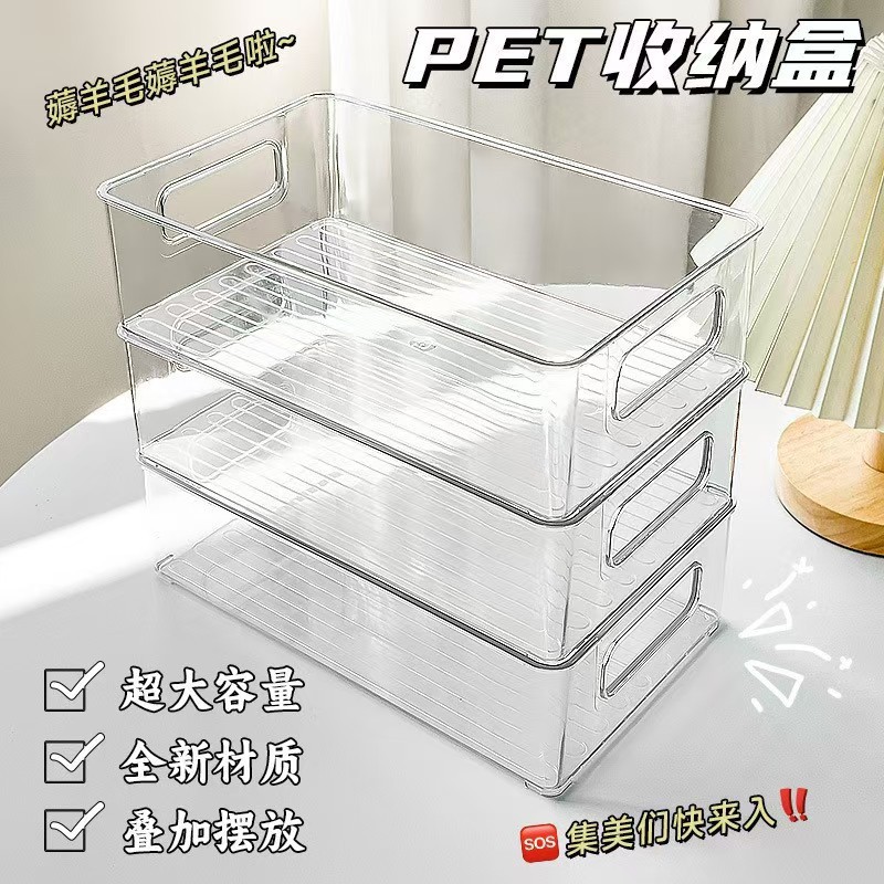 PET透明冷蔵庫収納ケースデスクトップ整理ケース本収納ケース家庭用収納物重ね収納可能食品
