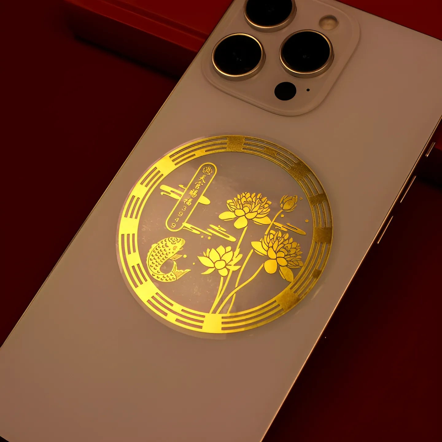 天官赐福荷花锦鲤净秽生财南心合一金属贴纸厨房门饰财库手机贴